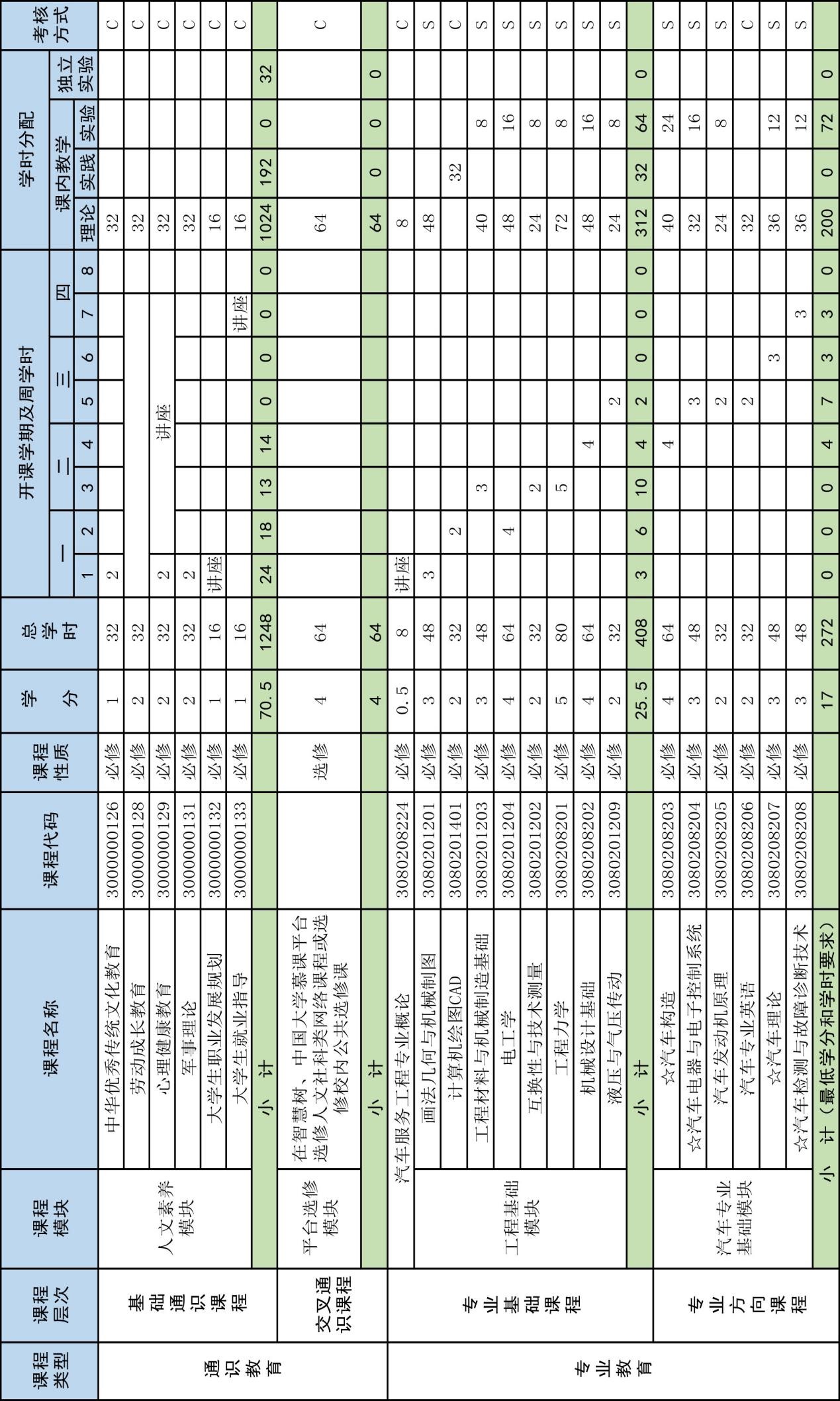 2、汽车服务工程专业毕业最低要求达到170学分;
