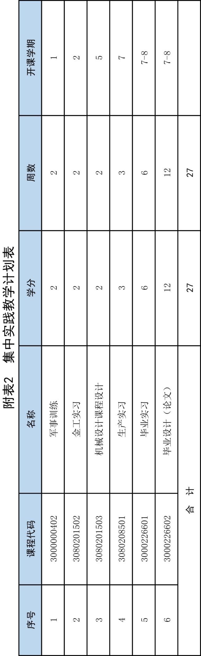 附表2:集中实践教学计划表