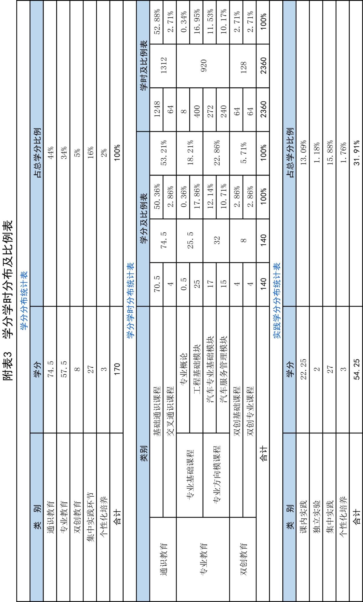 附表3:学时学分分布及比例表