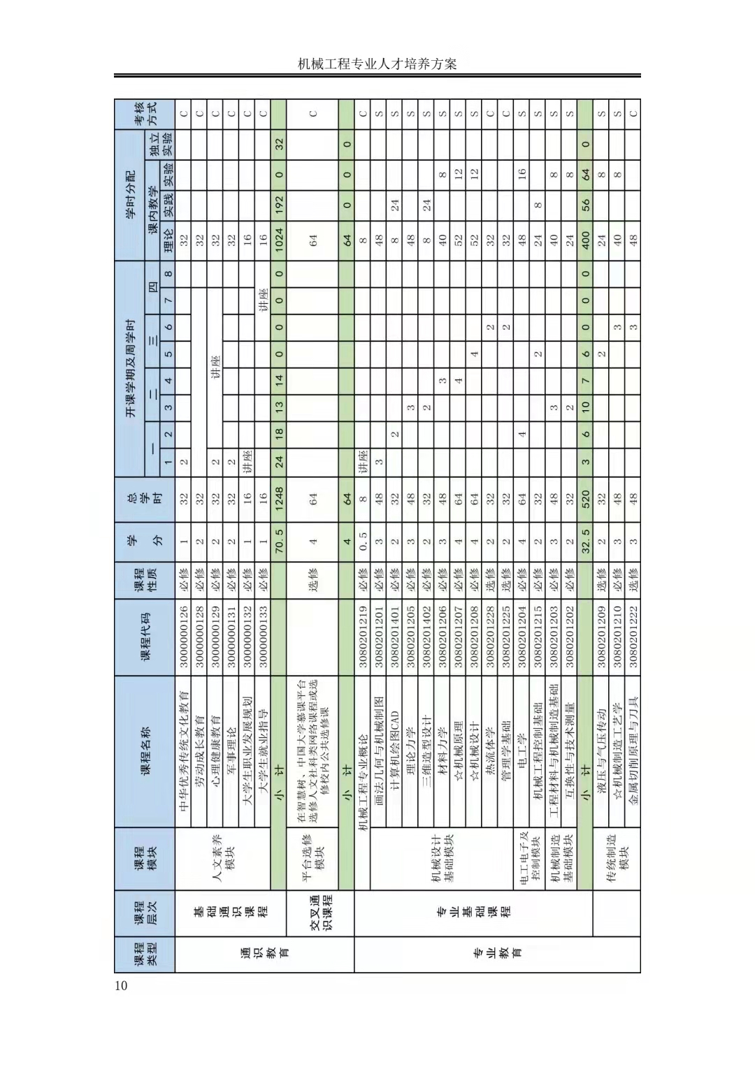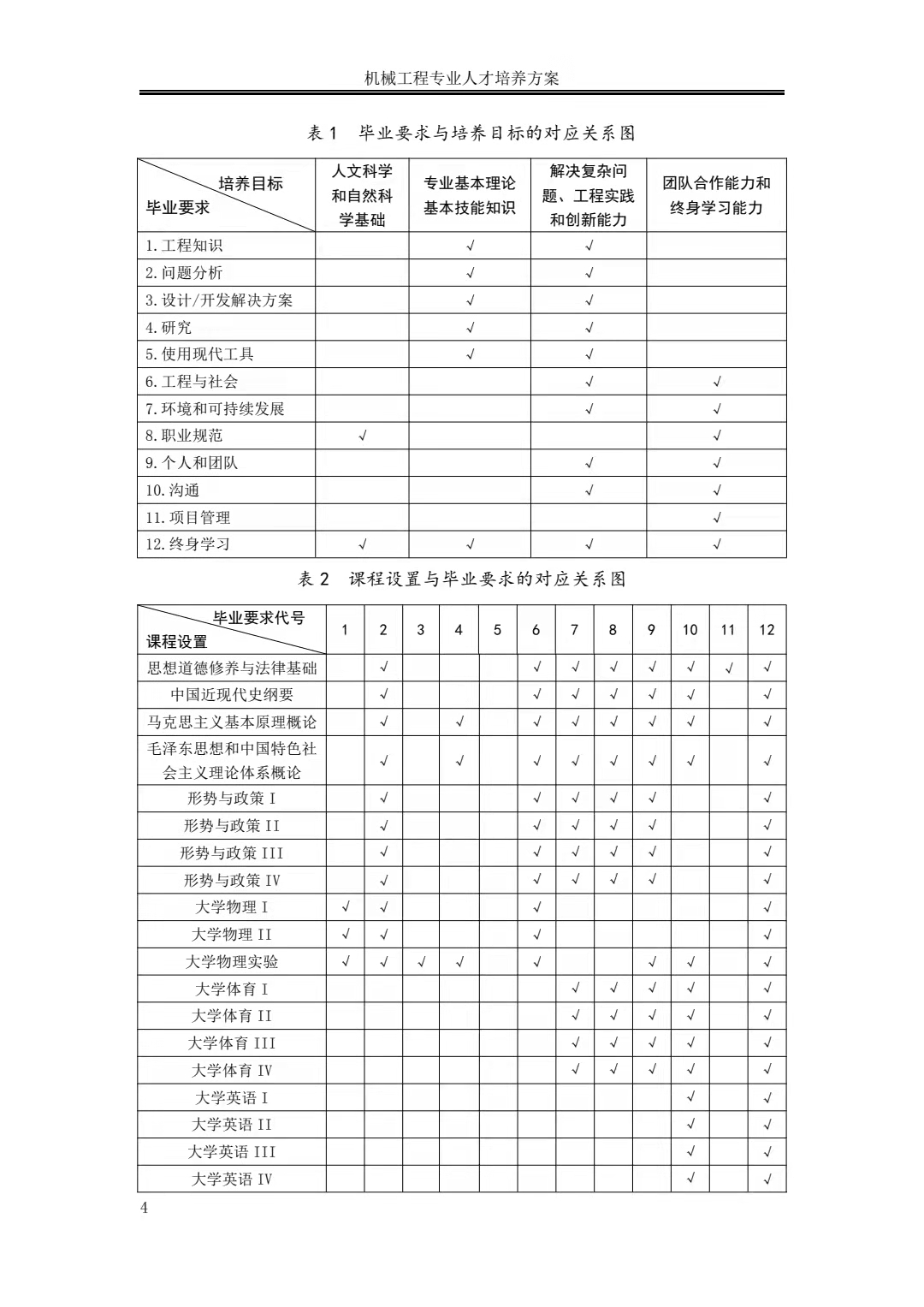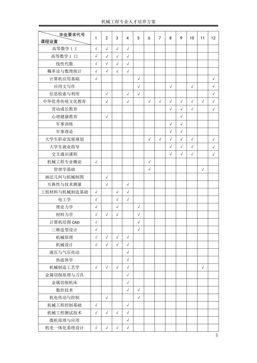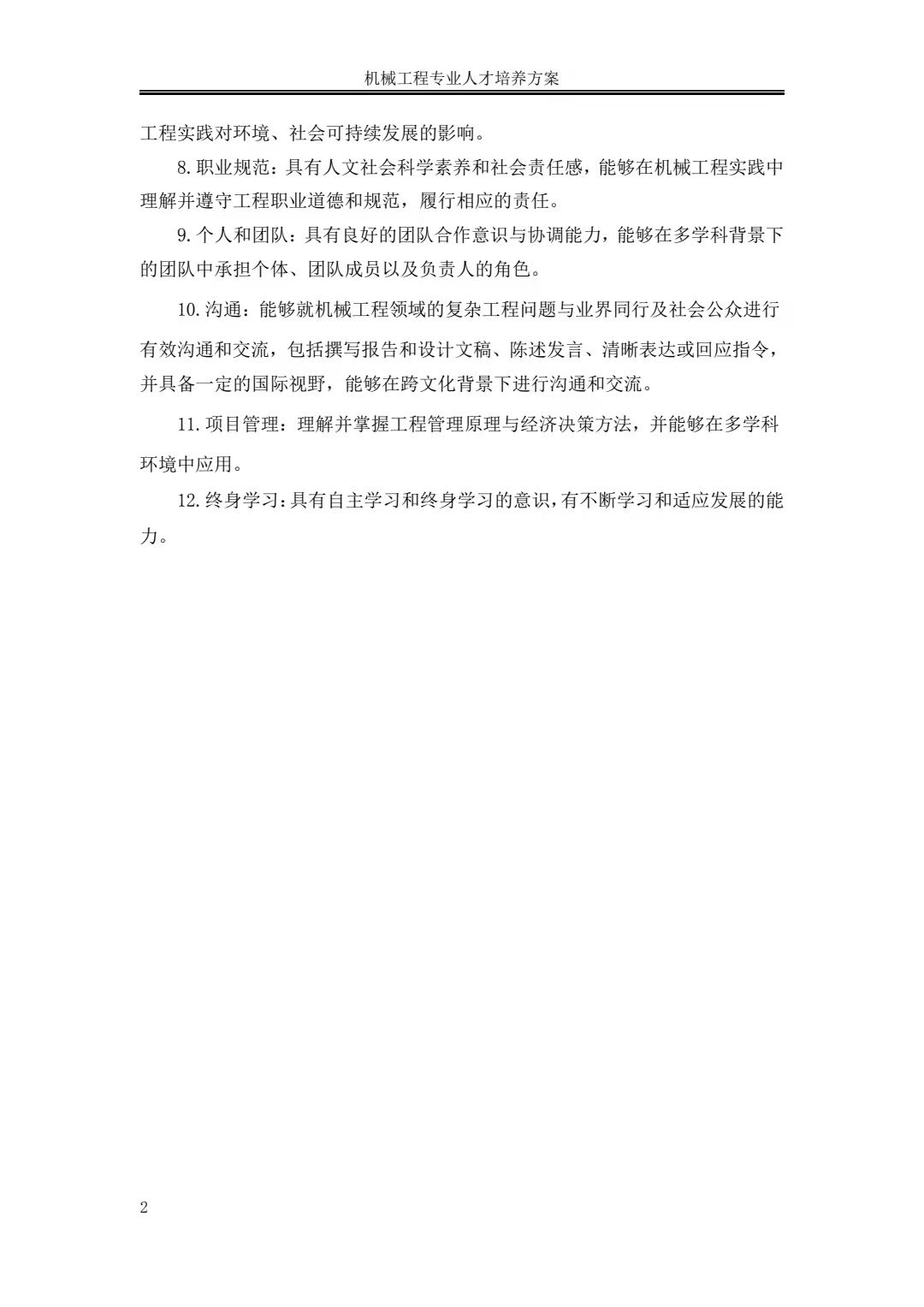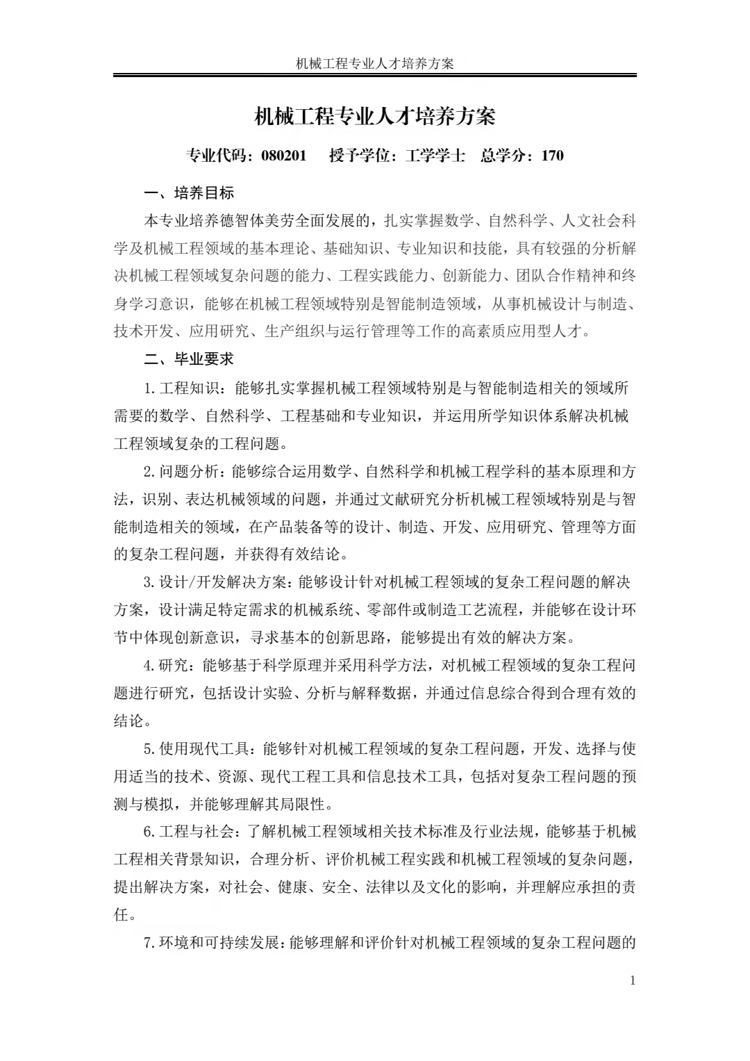 机械工程专业人才培养方案