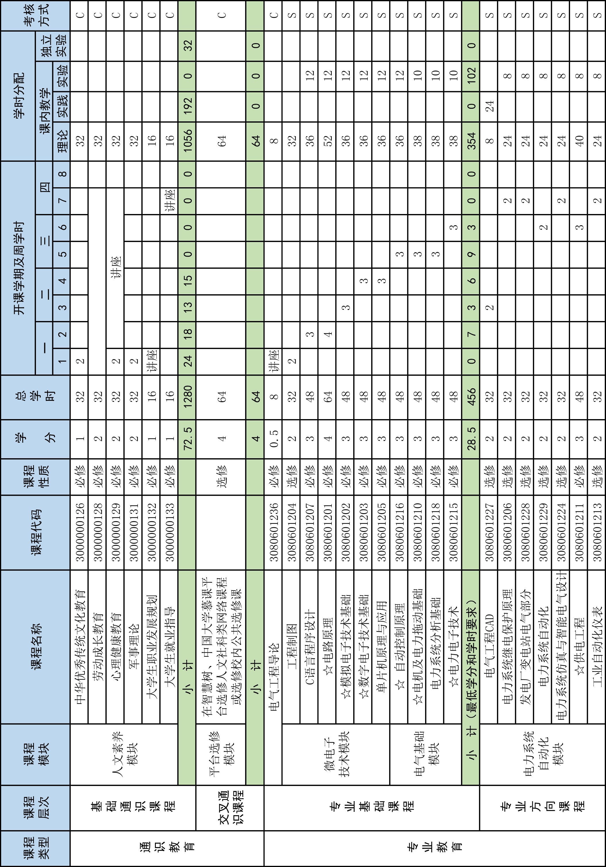 2、电气工程及其自动化专业毕业最低要求达到170学分;
