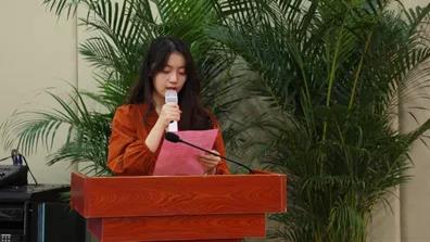 预科班任课老师代表郑路莎老师讲话