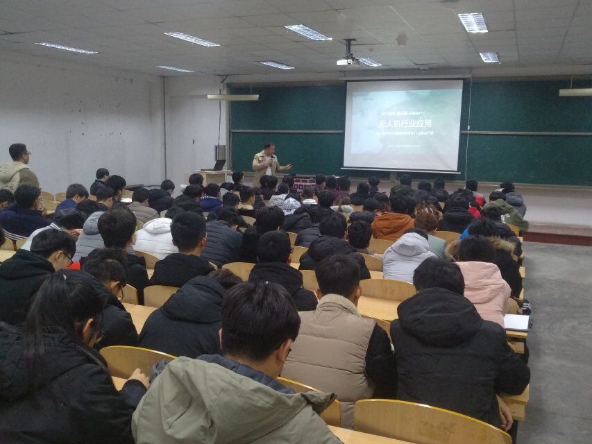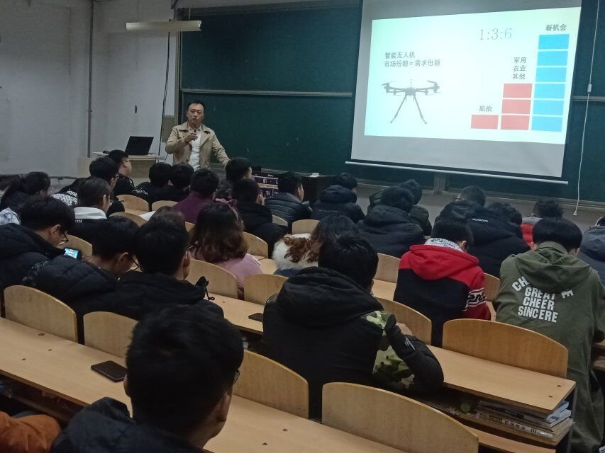 邀请无人机行业应用专家,青岛航空运动协会副秘书长,世界飞行者大会,全国体育行业技能无人机大赛山东队领队胡绪柯经理为青岛恒星科技学院装备学院的大一,大二学生开展了本次讲座。此次讲座讲述了无人机除了进行航拍还能做什么?主要对无人机市场充分调研的基础上进行应用分析,无人机市场现状及趋势研究,还有就是对于中国无人机从军用到民用发展阶段。