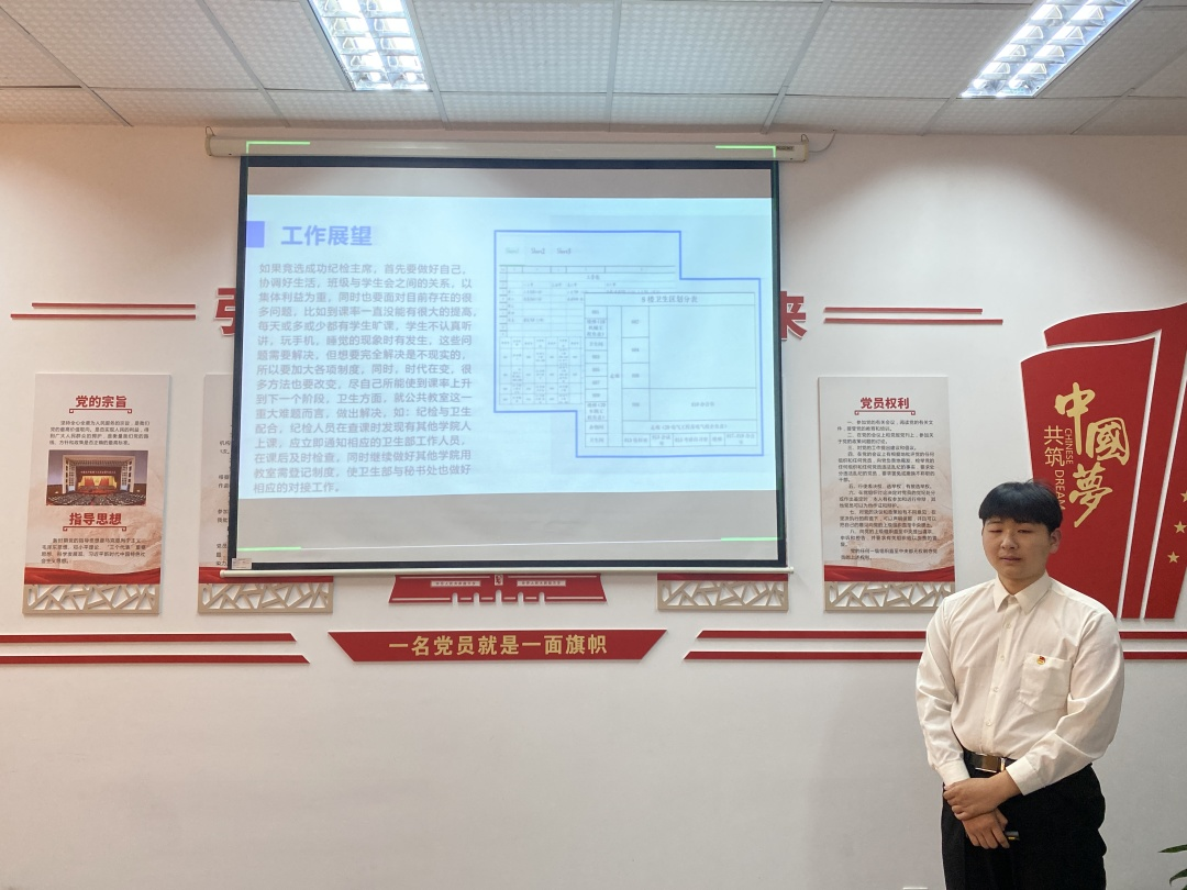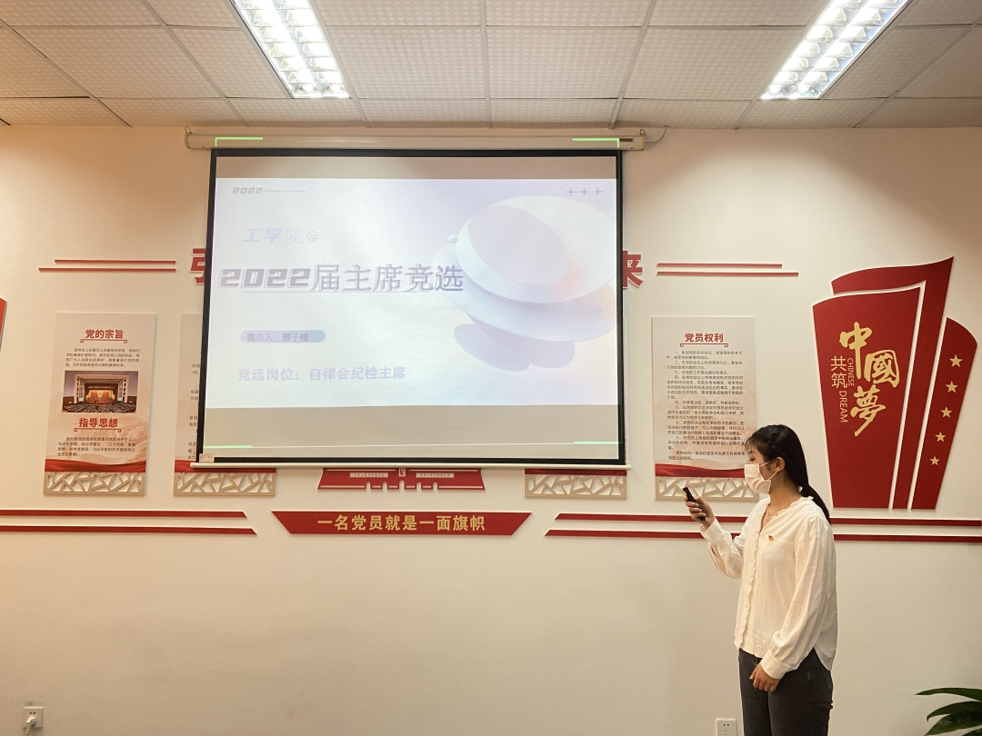 本次竞选共分为竞选演讲和现场答辩两个环节,坚持“公平、公正、公开”的原则,经过自愿报名、辅导员推荐、资格审查,共18名学生报名参加主席团竞选,参选人结合PPT,从个人经历、自我定位、岗位认知、工作展望等多个方面展开演讲。
