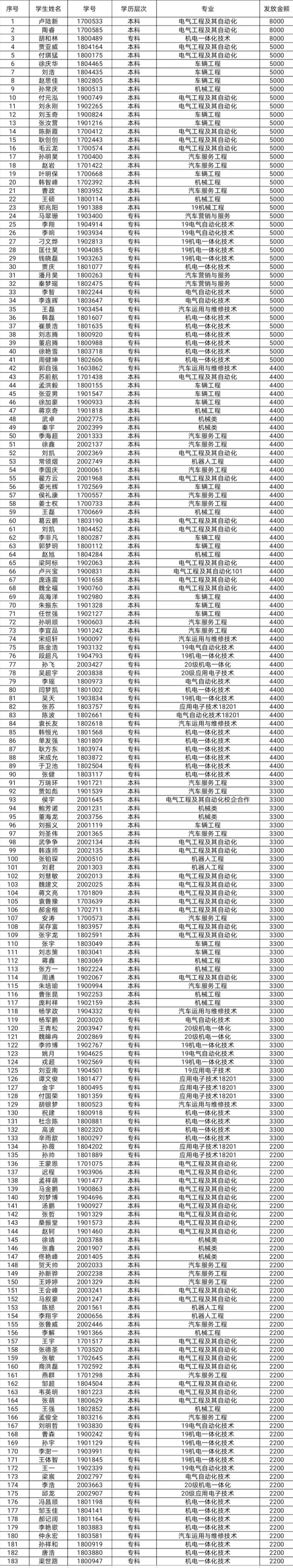 根据教育部和国家民委2020年国家奖助学金评审相关文件精神,学校严格按照《青岛恒星科技学院国家助学金管理实施办法》和《普通高校国家奖学金工作指南》文件规定,工学院院按照公开、公平、公正、择优的原则。经学生本人申请、班主任推荐、工学院国家奖助学金评审领导小组评审,评选出2020-2021学年获国家奖学金学生3名,2020-2021学年获励志奖学金学生38名,2020-2021学年获国家助学金学生142名,如有异议,请于2020年11月4日17:00前,以口头或书面形式向学生资助管理中心反映。公示如下: