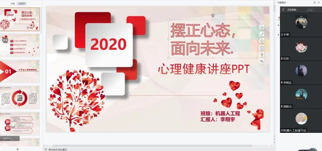 大学时代是人生的重要阶段,这一时期迫于学习工作人际关系的压力,再加上突如其来的疫情影响,种种矛盾与冲突交织在一起对大学生营造了各种的心理误区和心理障碍。为了进一步的提高我院学生的心理素质,促进学生的身心健康,普及心理健康知识,2021-2022学年下学期工学院开展四月份心理主题班会。