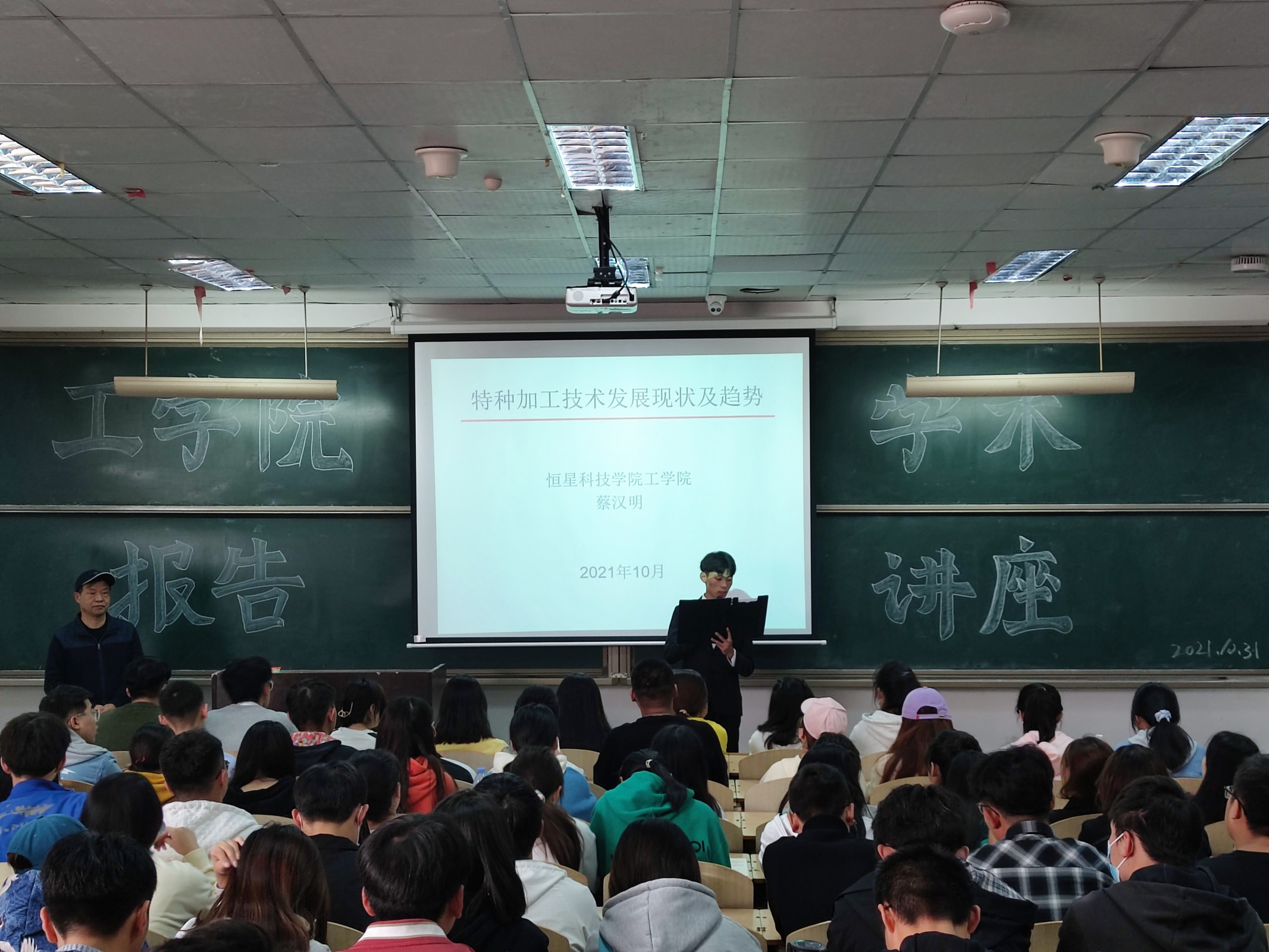 为了让同学们了解更多特种加工技术的相关知识,2021年10月31日青岛恒星科技学院工学院学习部承办了“特种加工技术及其发展趋势"学术讲座,有幸邀请到了曾任山东省工程图学常务理事、青岛市信息化专家咨询委员会委员、青岛设计与计算机图学CAD/CAM专业委员会主任、青岛计算机学会CAD/CAM委员会常务理事、全国CAD培训青岛科技大学培训基地主任的蔡汉明教授来为大家讲解相关方面的知识。
