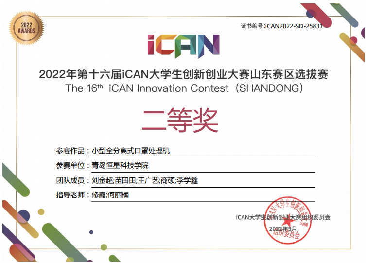 受疫情的影响,本次大赛山东赛区选拔赛于 2022 年9月25日举行线上答辩,通过同学们赛前认真准备,答辩现场精彩的展示,本次大赛机械与汽车工程学院共获得省级二等奖1项、三等奖3项、优胜奖1项的优异成绩。