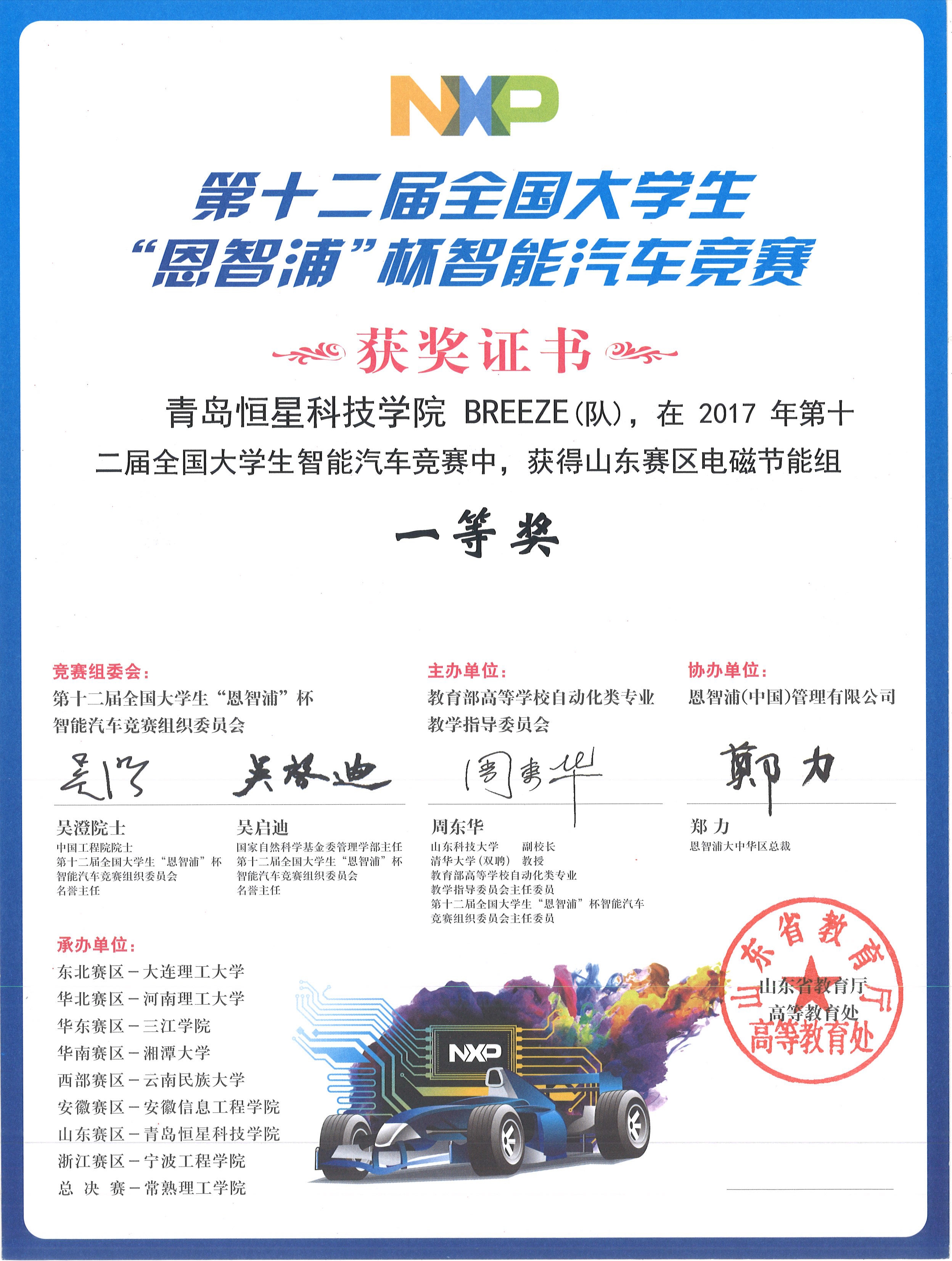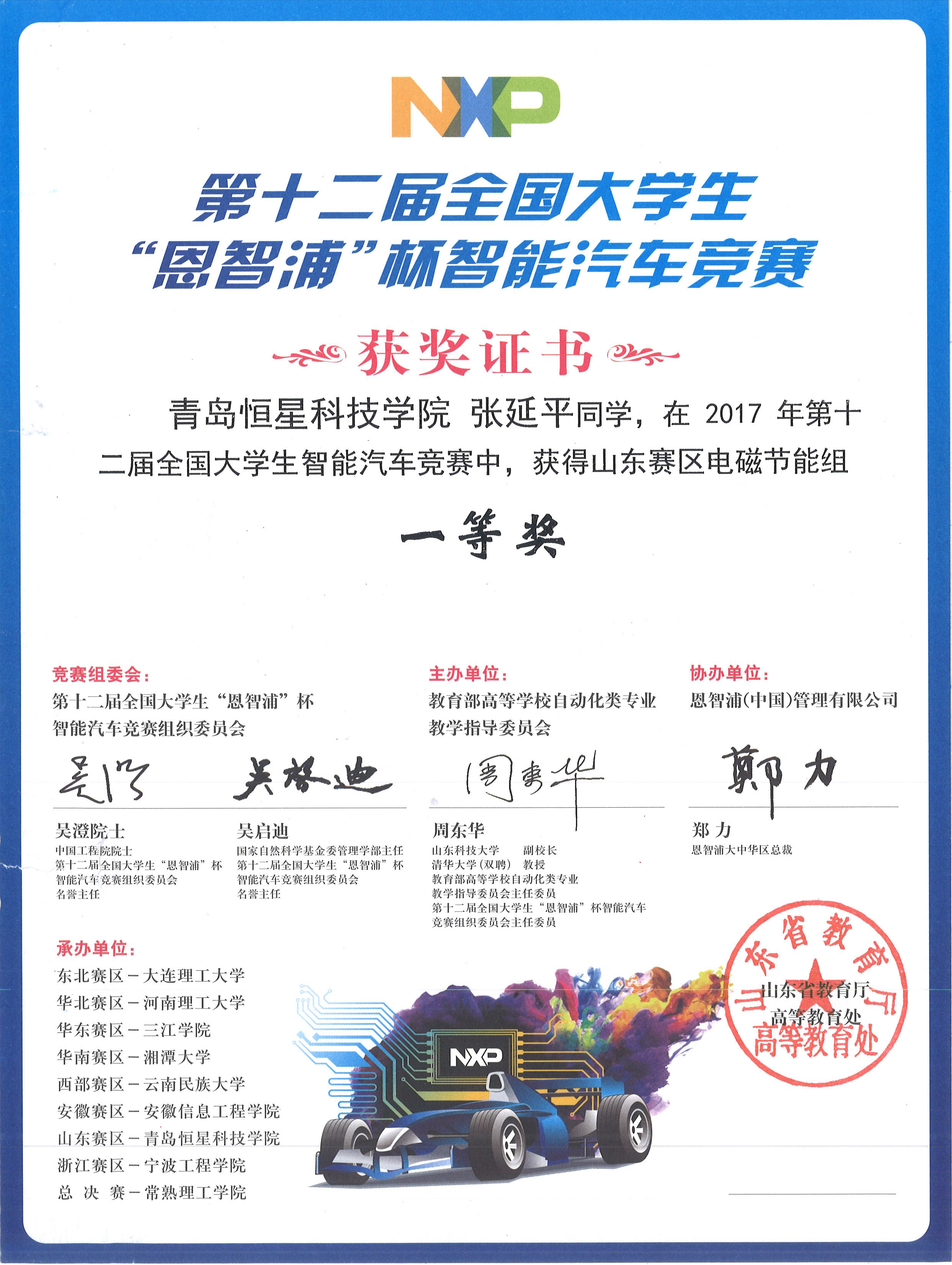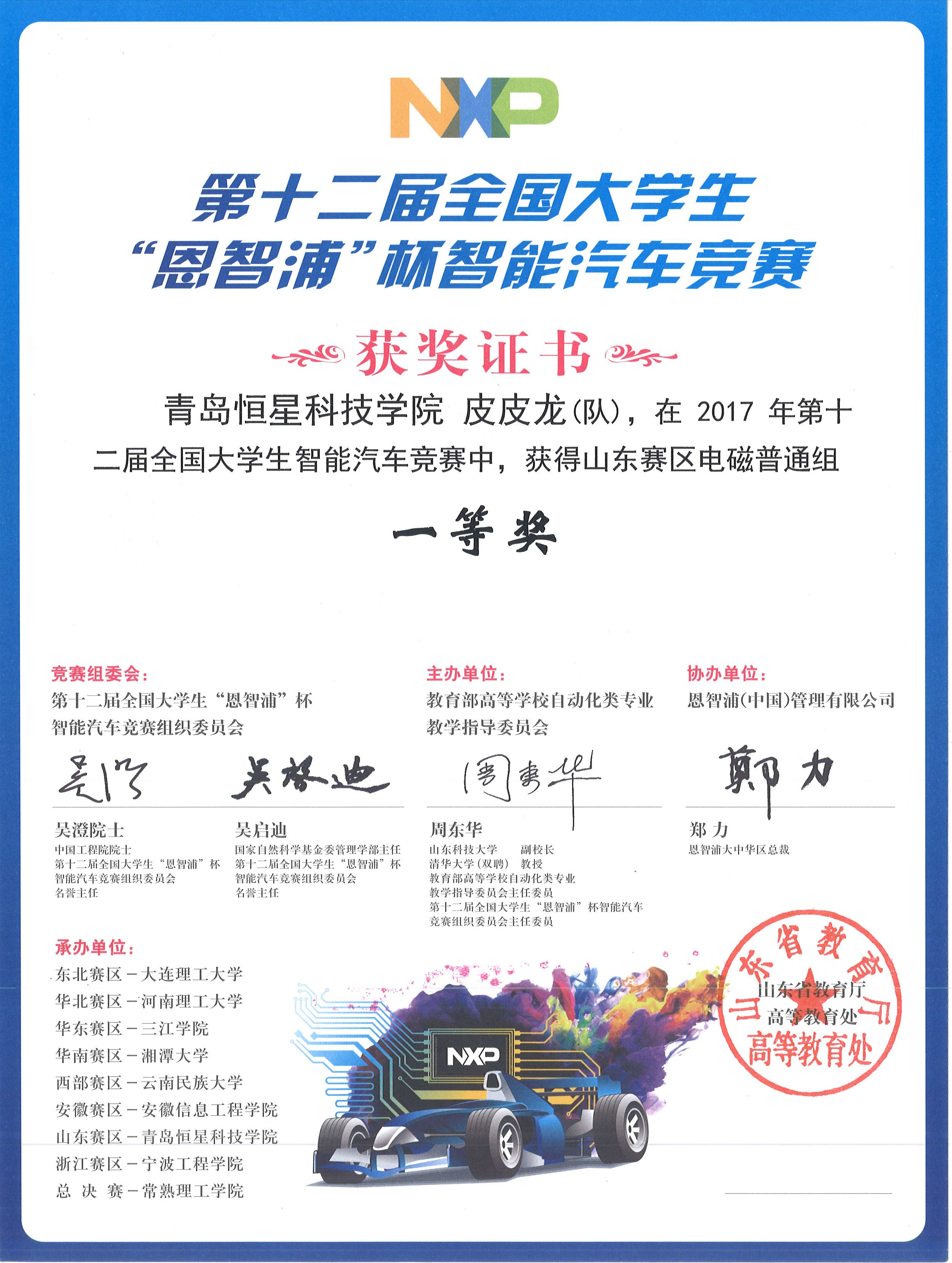 2017.7第十二届全国大学生”恩智浦“杯智能汽车竞赛获奖如下:
