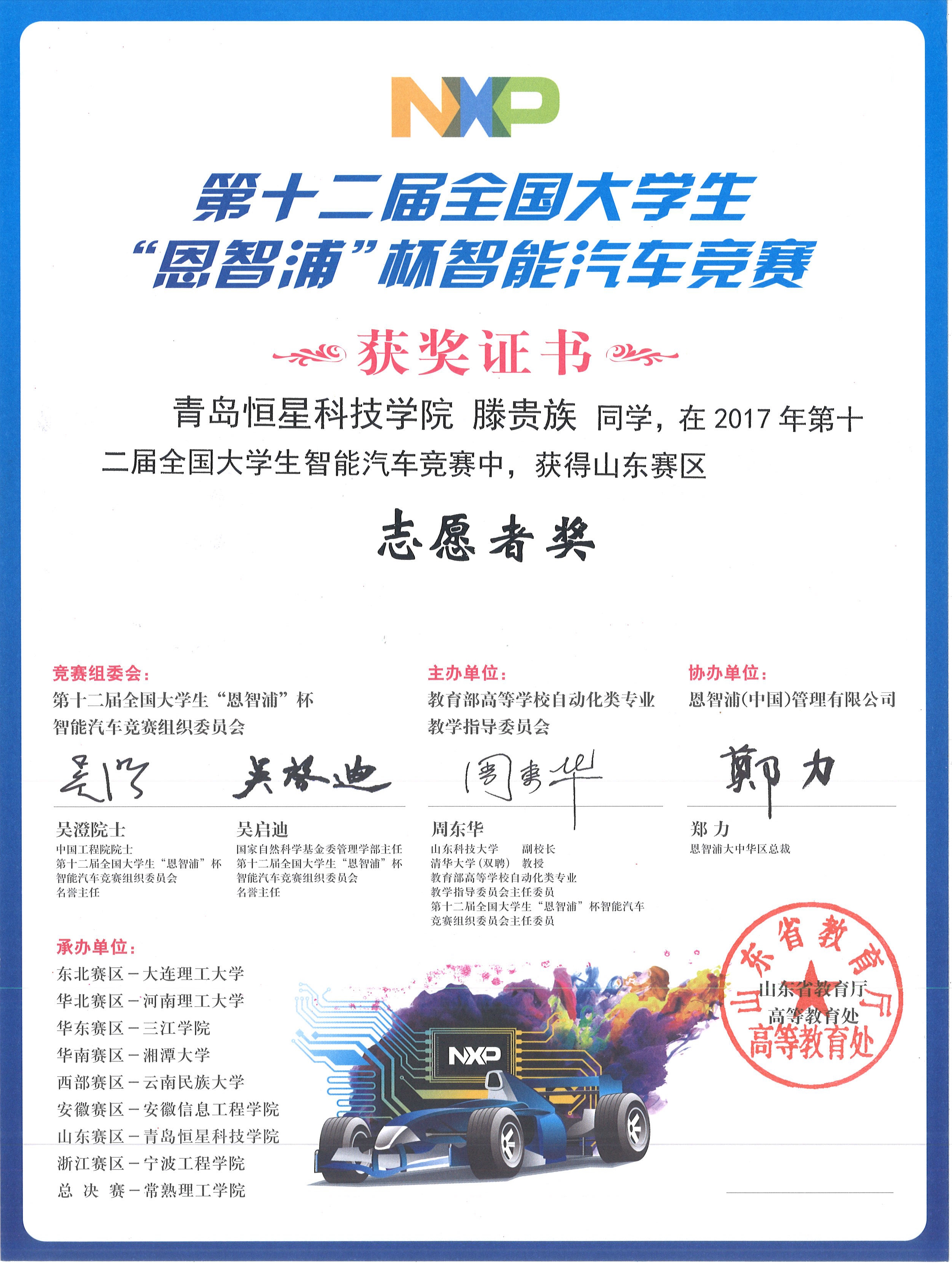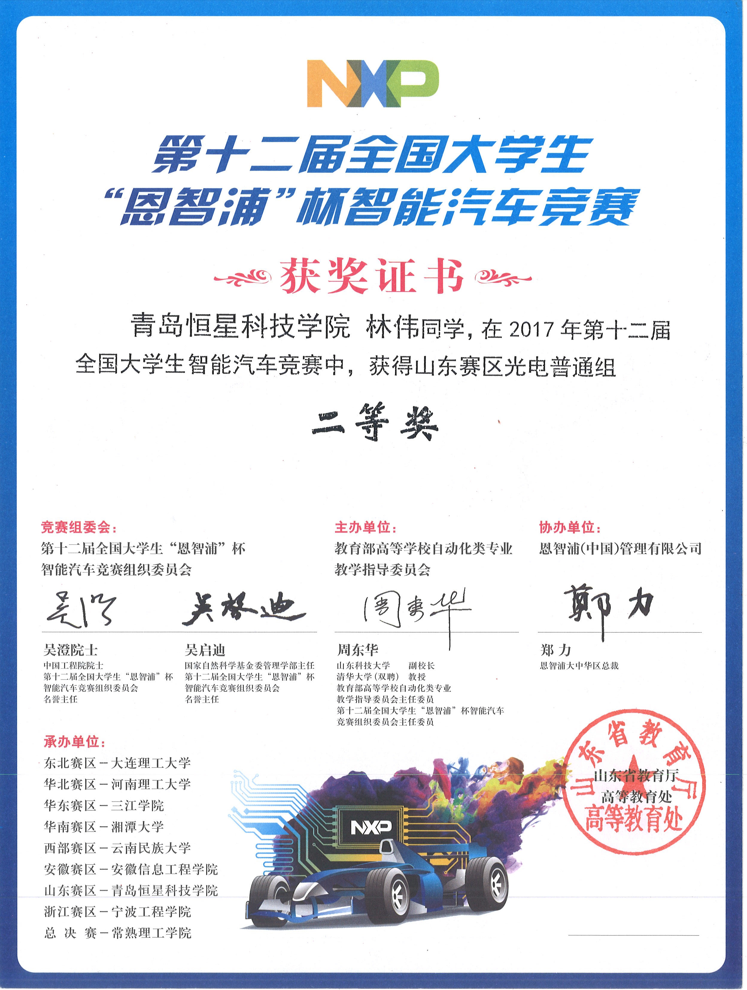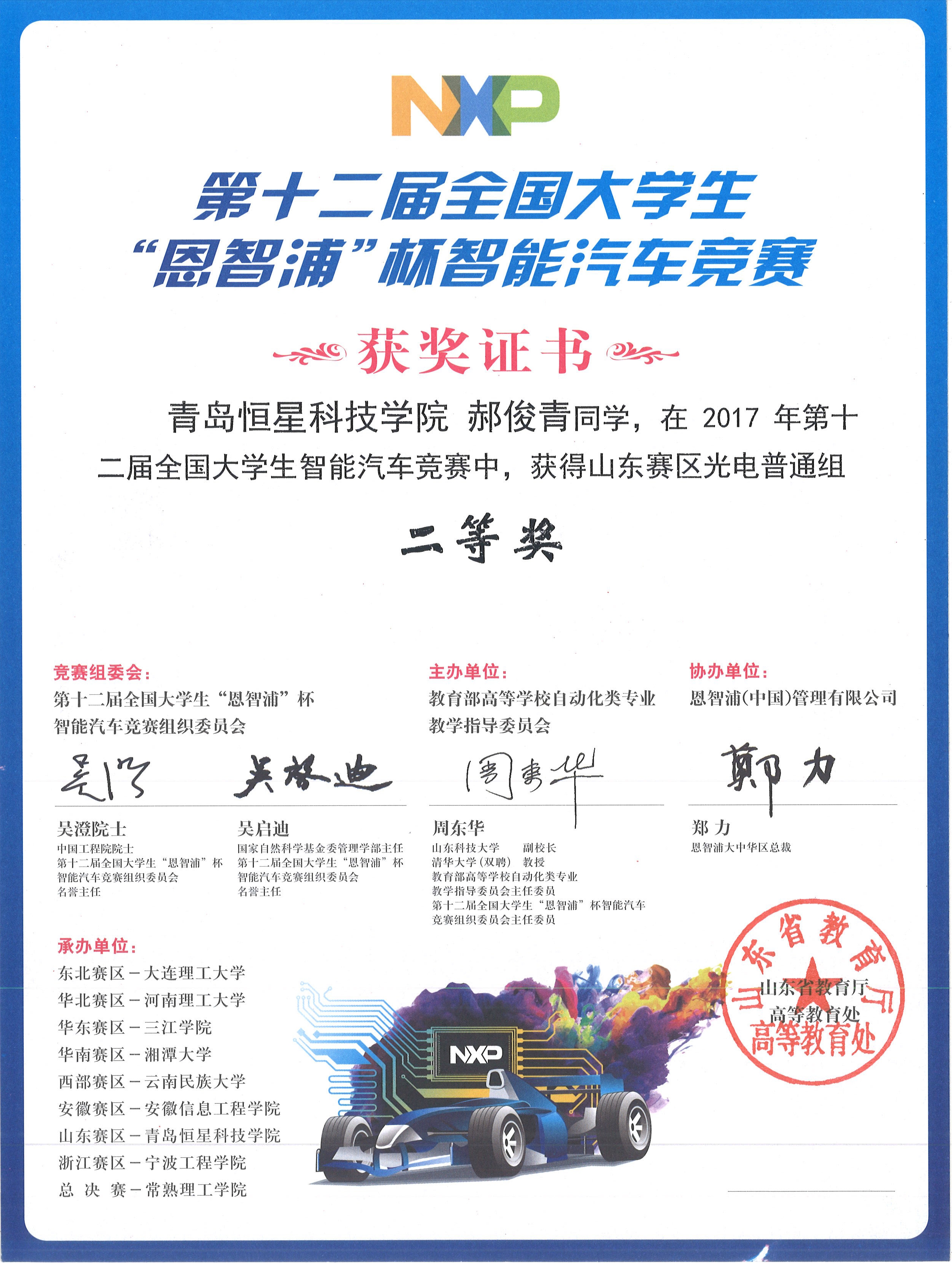 2017.7第十二届全国大学生”恩智浦“杯智能汽车竞赛获奖如下: