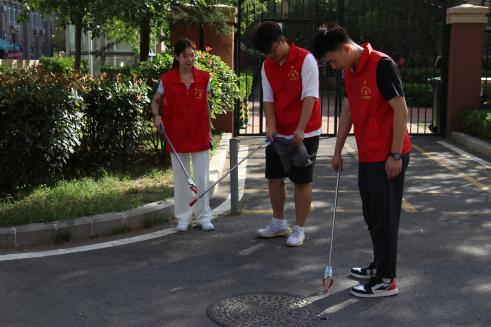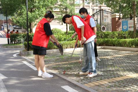 9月15日上午,志愿者们在张家一老师和栾晓晖老师的带领下身着红马甲从学校集合出发,大家井然有序的领取清扫工具,并按照预先分工各自前往指定区域。活动中,志愿者们各司其职对路边及草丛的垃圾进行清扫,每个同学负责一定的区域,使社区内露天环境里的垃圾彻底被清除。