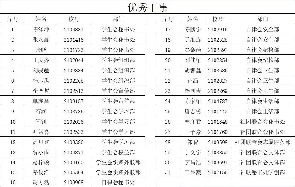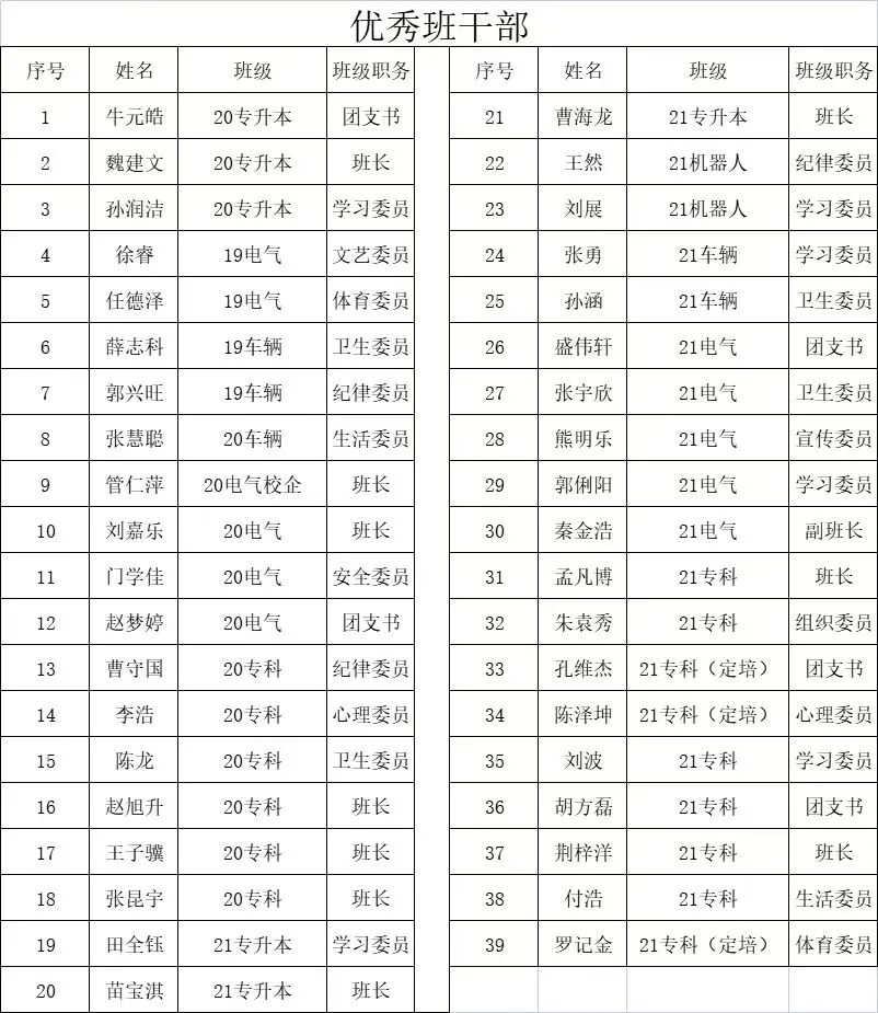 优秀班干部