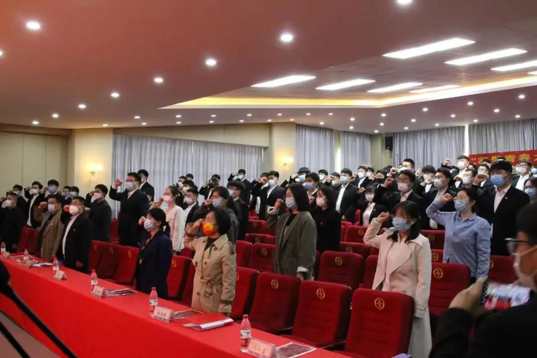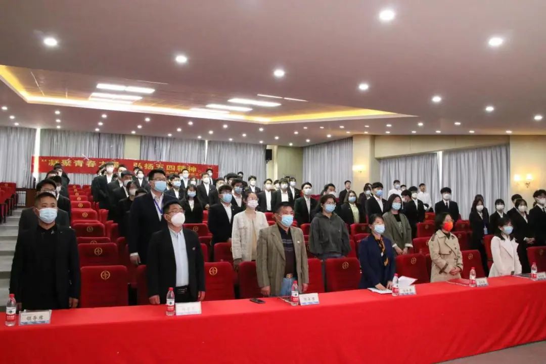 全体起立奏唱团歌,五四表彰大会正式拉开序幕。