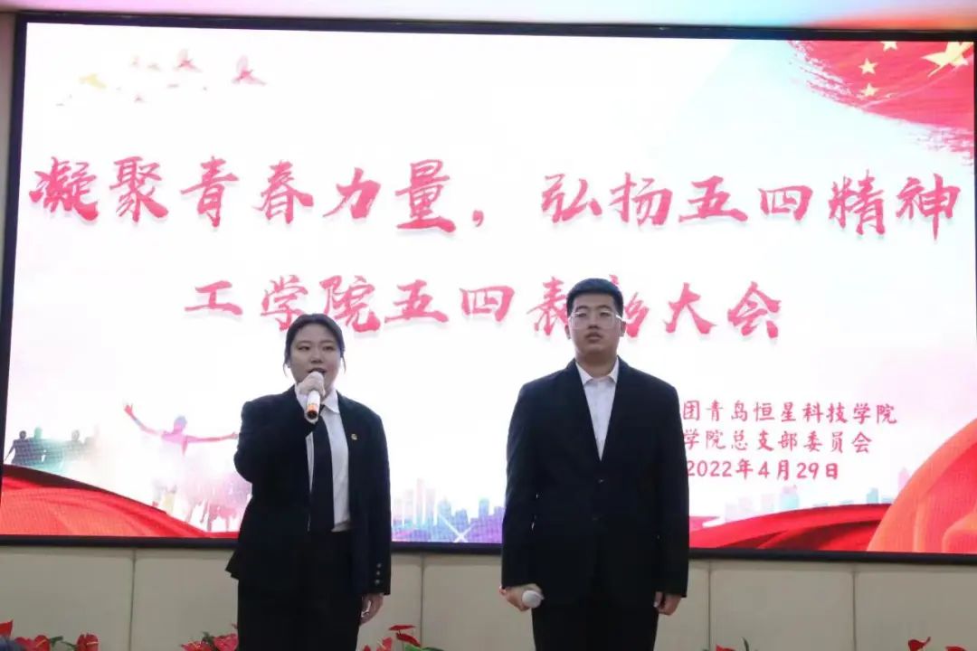 五四风雷,激荡百年,奋斗精神,一脉相承。在建团百年之际,为进一步弘扬和继承“五四”爱国精神,提升全体团员青年学史明理、学史增信、学史崇德、学史力行的思想自觉,激励各支部团员、团干部在团的建设和各项工作中再创佳绩,鼓励其担当作为、攻坚克难,青岛恒星科技学院工学院于2022年4月29日下午16:00在A8传习楼110教室举办了2022年度“五四”表彰大会。