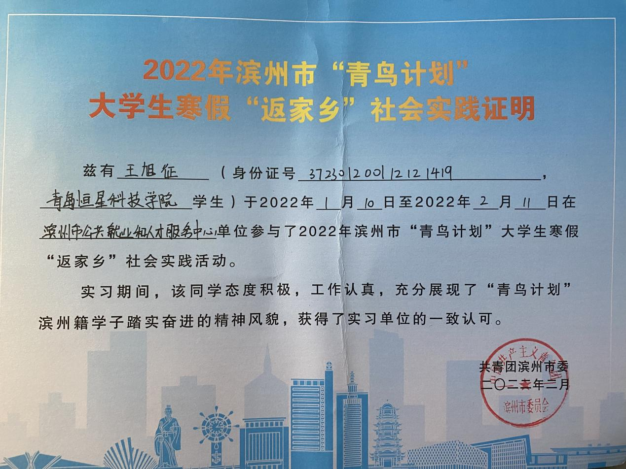 “青鸟计划”是一座连接未来与梦想的桥梁,学校通过“青鸟计划”平台、“青鸟驿站”微信群等方式向同学们精准推送实习实践岗位,青岛恒星科技学院工学院机器人工程专业的王旭征积极响应政府和学校的号召,加入家乡推进复工复产的社会实践活动,用自己的实际行动推动青鸟计划的实践。