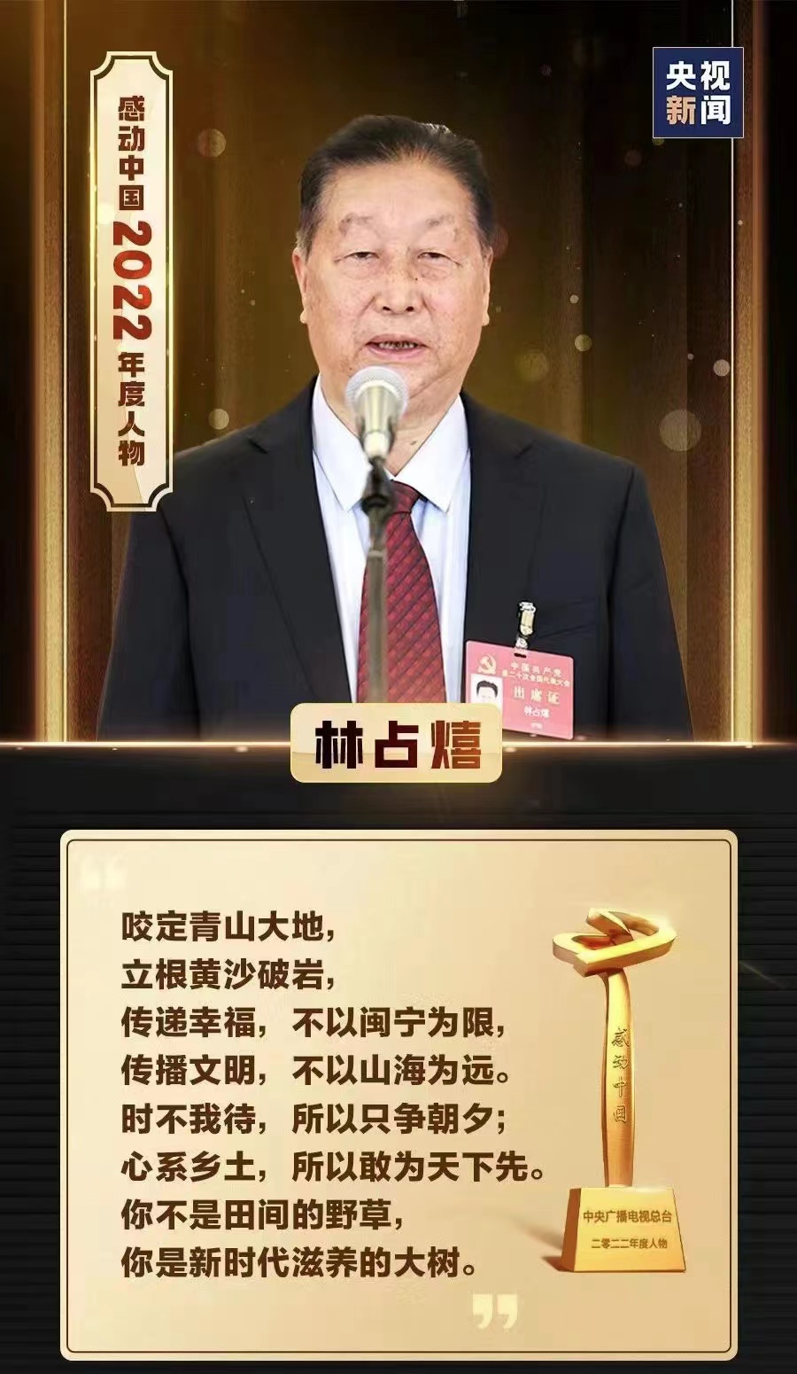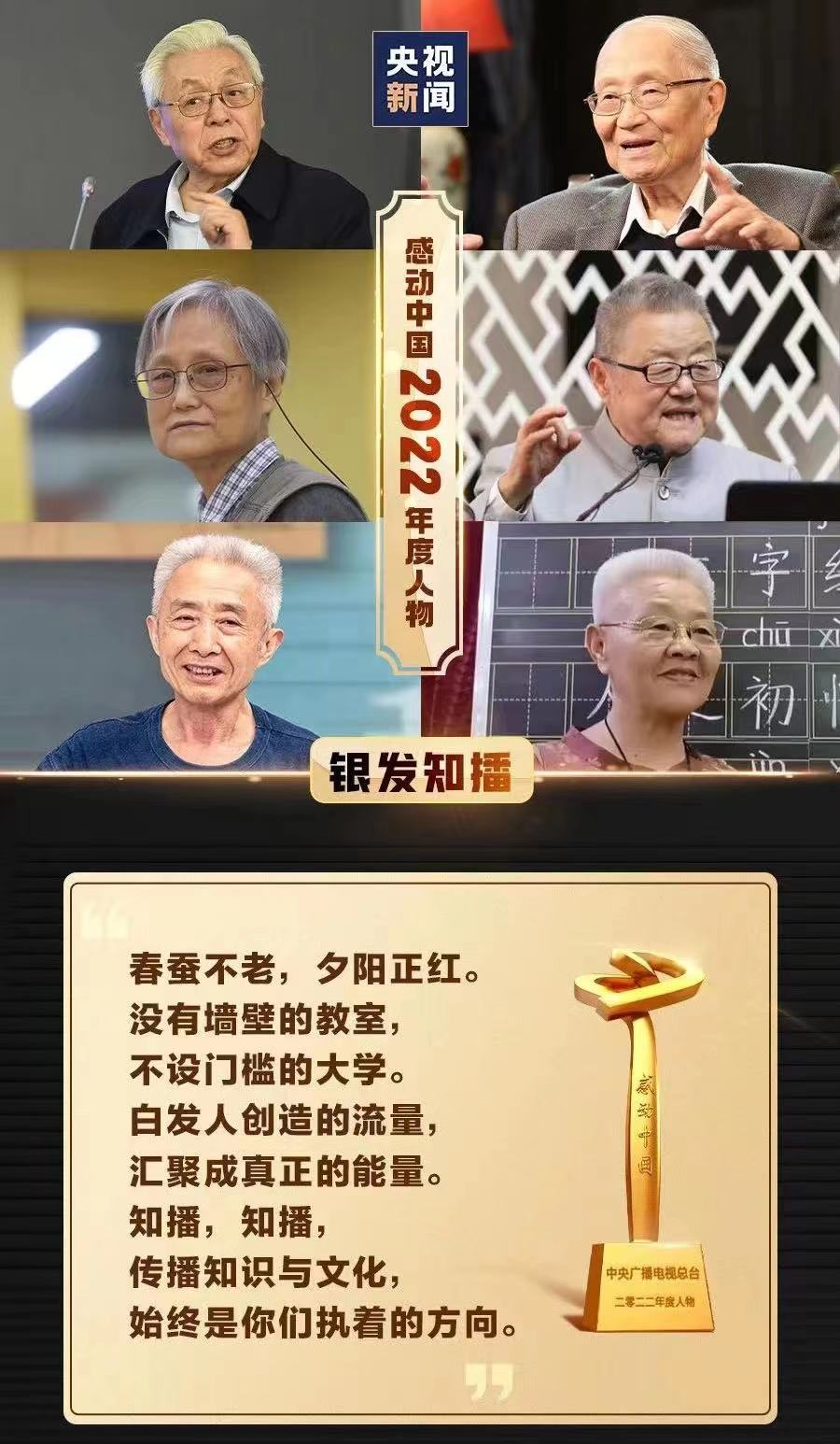 2022感动中国年度人物名单:钱七虎,邓小岚,杨宁,沈忠芳,徐淙祥,“银发知播”群体,徐梦桃,陈清泉,陆鸿,林占熺。