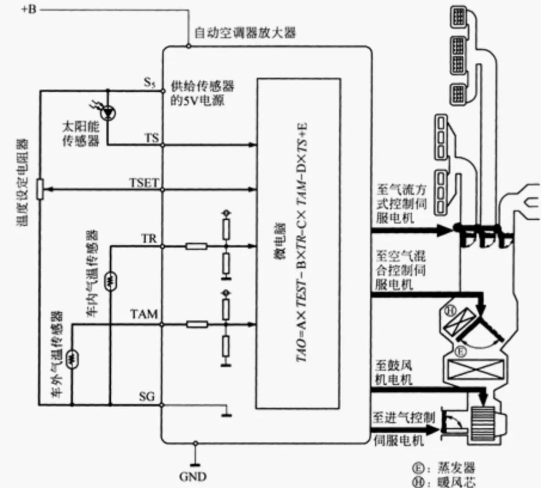 以取暖为例,空调通过温度传感器检测房间的温度高低,空调控制器将检测的温度与设定值进行比较,若温度低于设定值的下限,则使压缩机运行,温度上升,温度上升到设定值的上限时则停止运行。