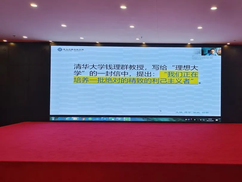 最后陈昌金博士通过习主席的讲话“发展史第一要务,创新是第一动力,人才是第一资源”强调了恒星培育大学生的初心和使命——为党育人,为国育才,并以总结了学校的办学模式——行校共建,产教融合。