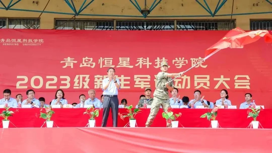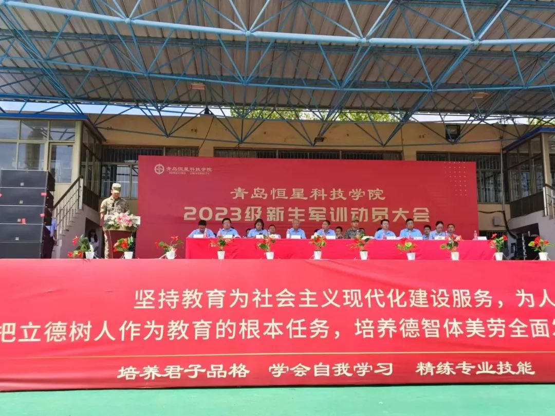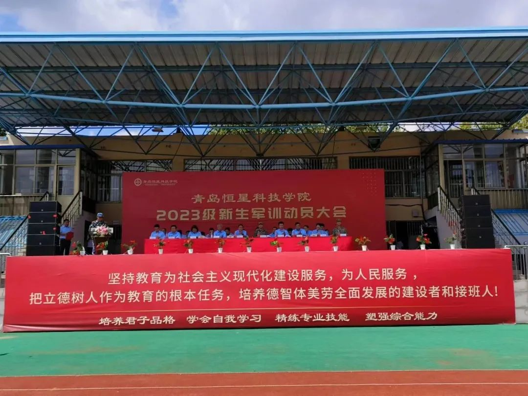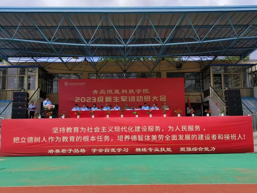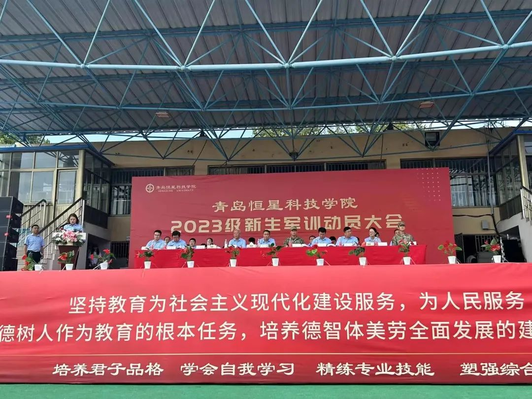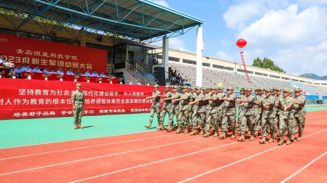 2023年8月29日上午,机械与汽车工程学院新生参与了青岛恒星科技学院开展的2023届新生军训动员大会。