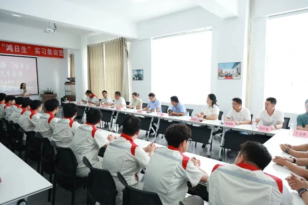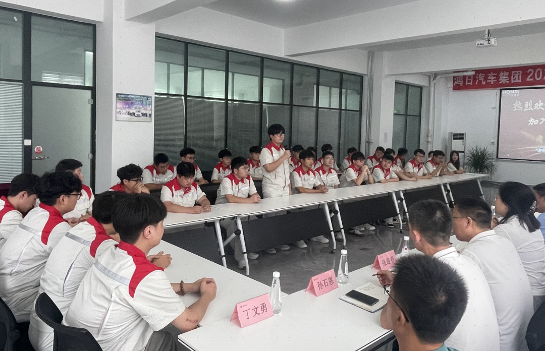 最后,29名实习生依次进行了自我介绍。每一位学生都自信沉稳,在简短的发言中清晰阐述了自己的专业背景与过往实践经历,并一致表达了对鸿日汽车集团企业文化的高度认同,以及对未来职业成长的热切期待,纷纷表示会珍惜此次实习机会,为企业的未来发展贡献青春力量。