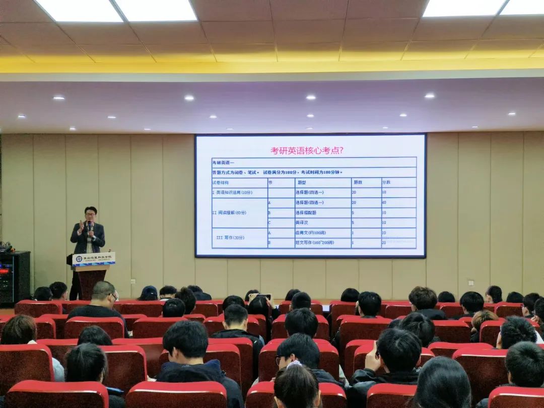 本次考研规划讲座的成功召开,不仅给同学们传授了关于英语考研的学习技巧,更重要的是帮助同学们看清了当前的考研形势,端正了学习态度,为今后的人生道路提供了清晰的选择思路。