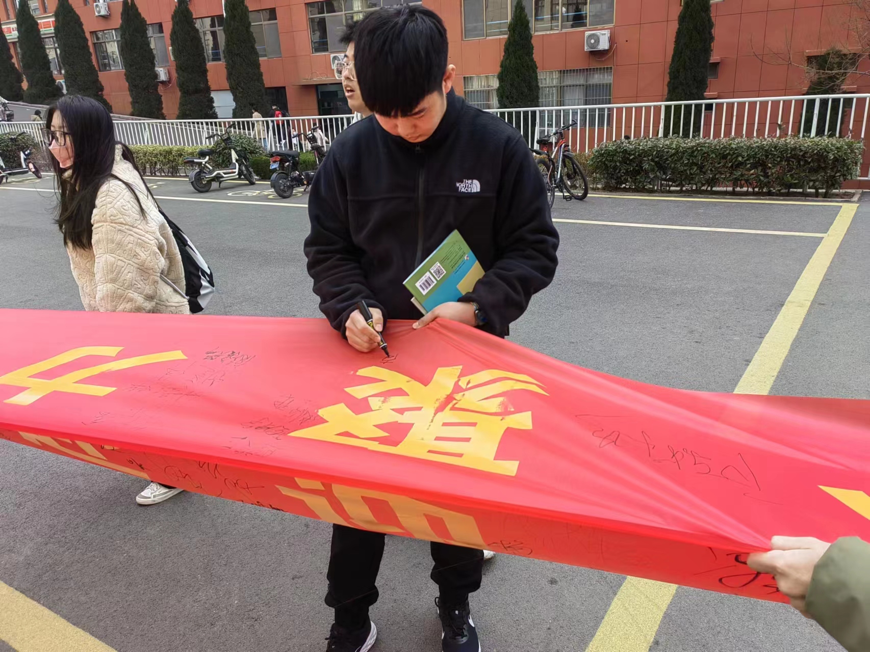 为切实推进学校评估工作,引导、激励学生树立良好的精神风貌,形成良好的教风、学风,顺利通过教育部本科教学工作合格评估,机械与汽车工程学院于2023年3月3日在A4教学楼平台举办“凝心聚力促学风,全力以赴迎评估”签字仪式,为本科评估加油鼓气。