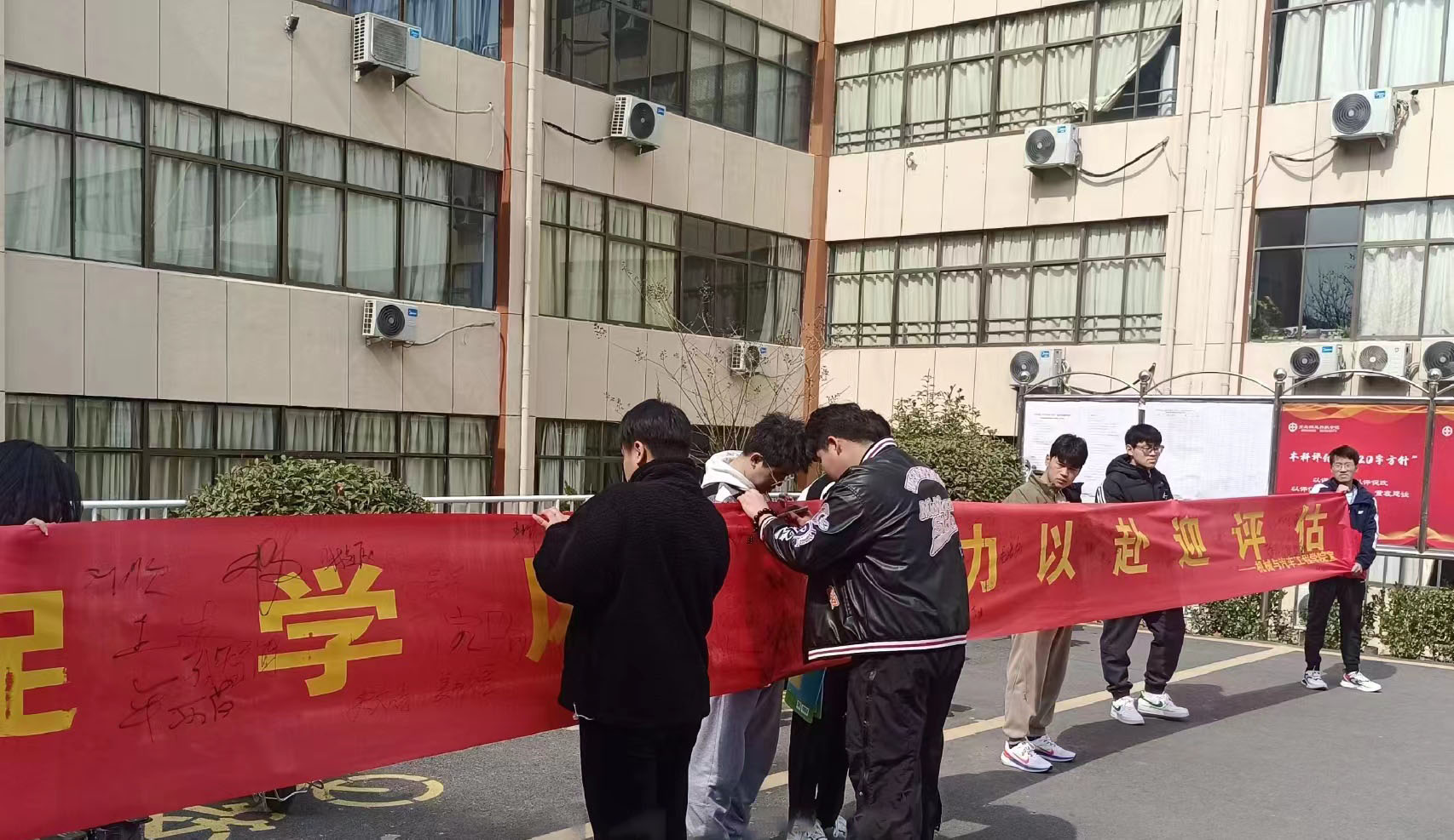 “迎评在我心中,落实在我行动”同学们庄严地在横幅上签下了自己的名字,一笔一划反映出来的是他们对评估胜利的信心。