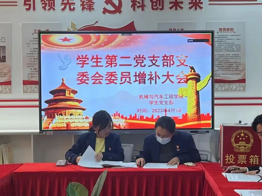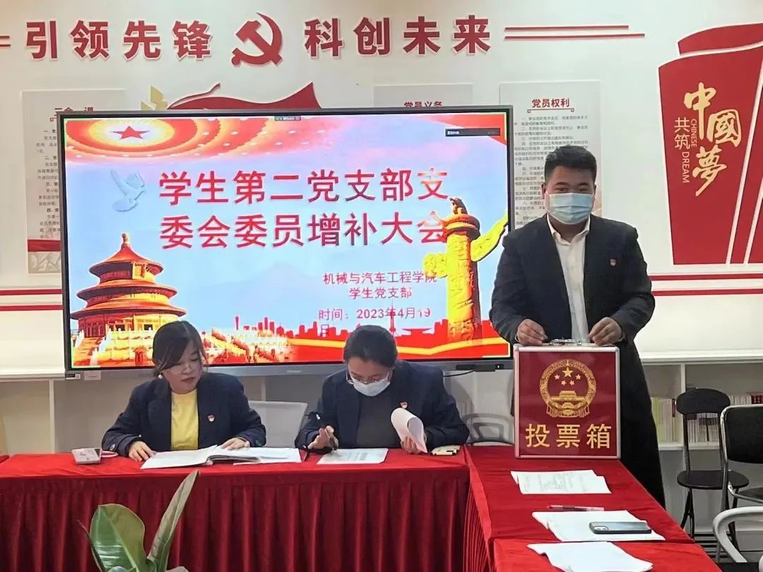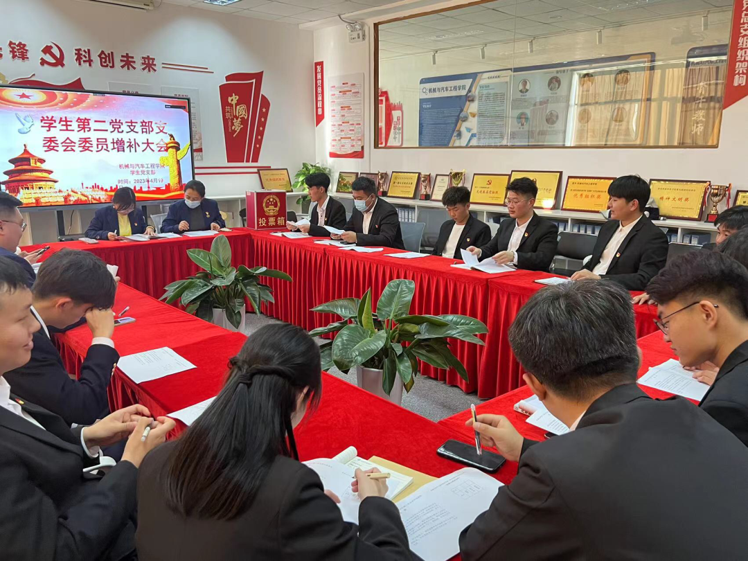 会议严格按照党章规定,开展学生第二党支部委员增补工作,坚持公平、公正、公开的原则,从崔子龙、胡帅、游晓青三位候选人选出二人担任机械与汽车工程学院学生第二党支部组织委员、宣传委员。