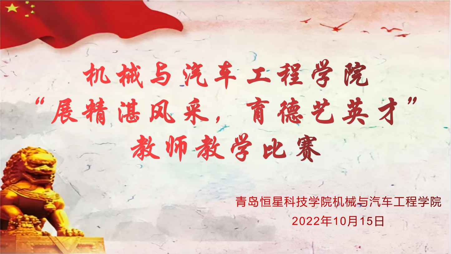 为贯彻落实中共中央国务院《关于全面深化新时代教师队伍建设改革的意见》,教育部等六部门《关于加强新时代高校教师队伍建设改革的指导意见》,中共山东省委、山东省人民政府《关于全面深化新时代全省教师队伍建设改革的实施意见》有关要求,围绕立德树人根本任务,以加强师德师风建设、锤炼高校教师教学基本功为着力点,机械与汽车工程学院在2022年10月15日于A4近思楼917教室举办“青年教师教学比赛”。