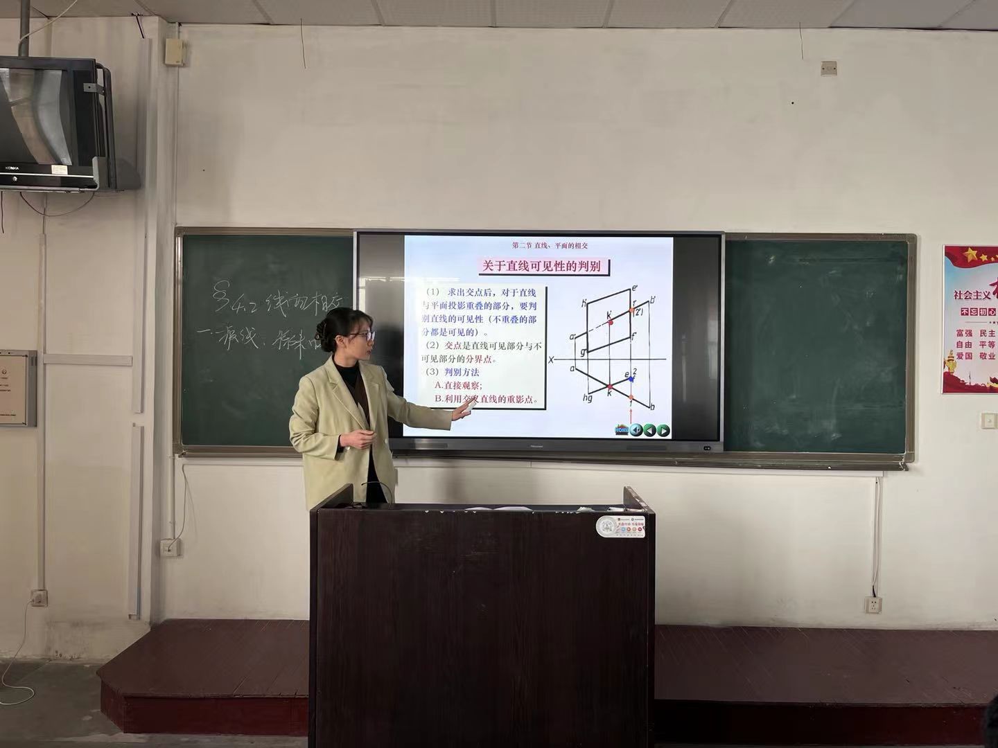 参赛的青年教师在给定的15分钟内进行PPT讲解,按顺序依次选定的教学内容进行现场教学展示,教师们在讲台上都以各自不同方式进行授课,体现出青年教师的活力与风采。
