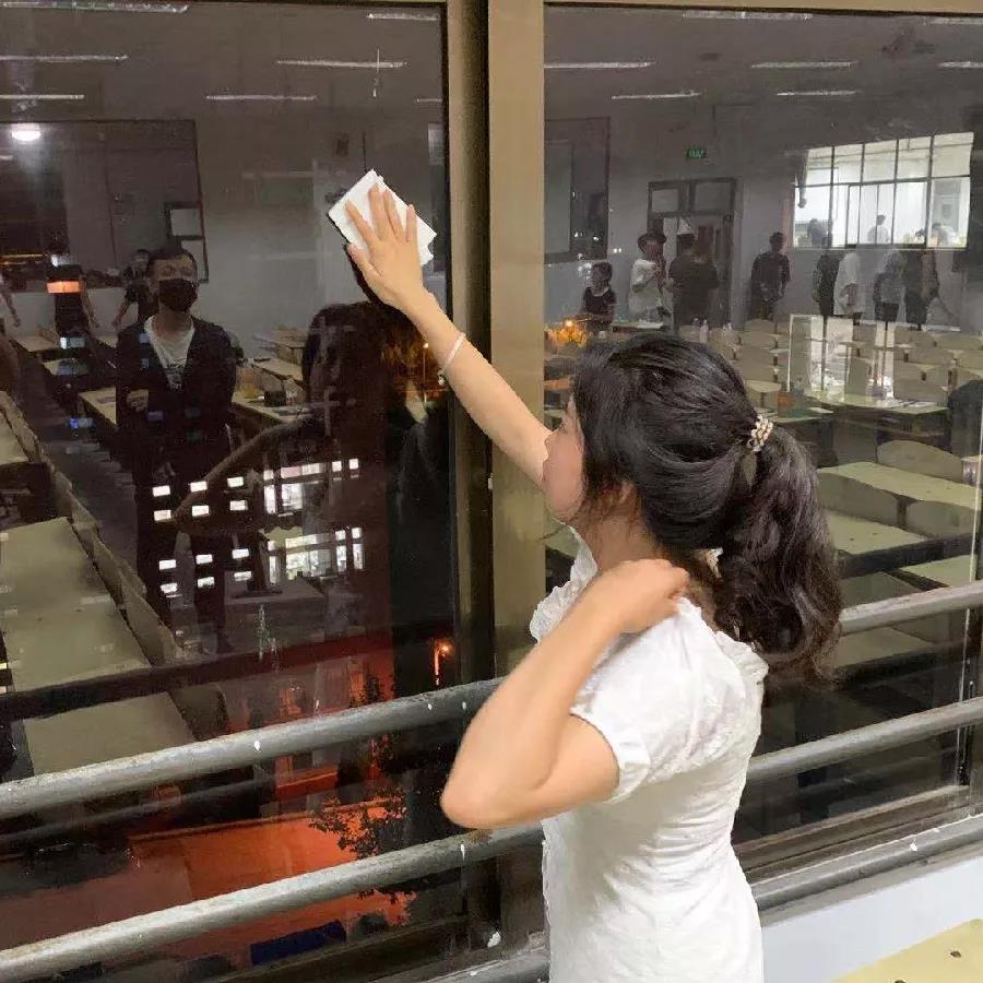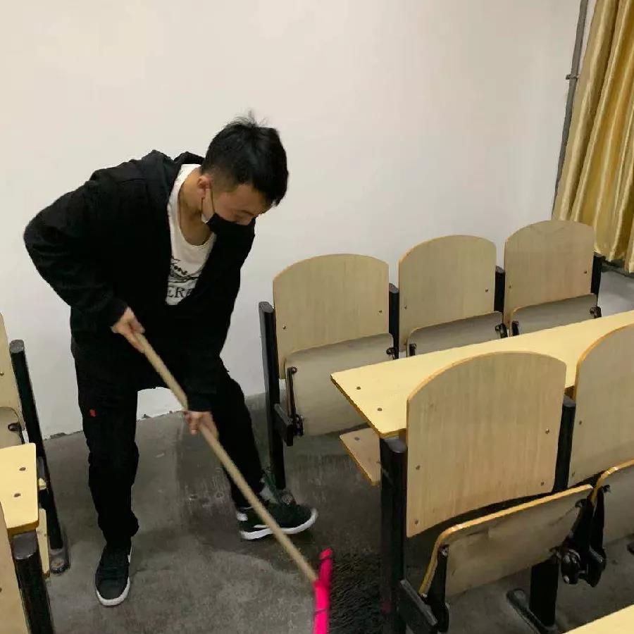 在安排好相应的工作后,工学院辅导员率先垂范,带头打扫卫生,全体学生分工明确,都积极主动的投入到劳动中去,并严格按照卫生消毒要求,全方位无死角地对楼道、教室的墙面、地面等进行了“搬家式”大扫除,做到清洁、细致、到位。