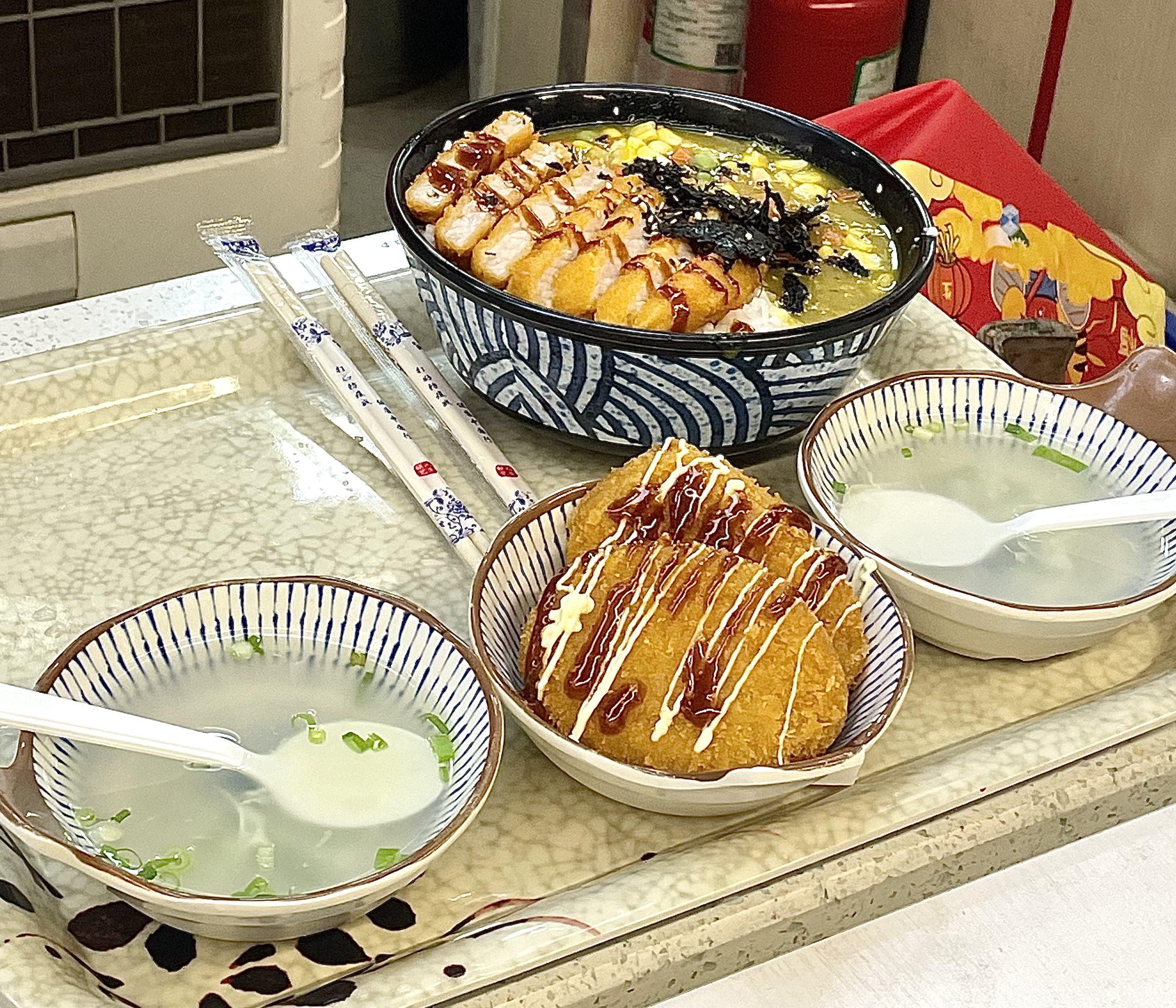 香脆可口的鸡排、搭配浓郁多汁的咖喱饭、一口下去简直太满足了。