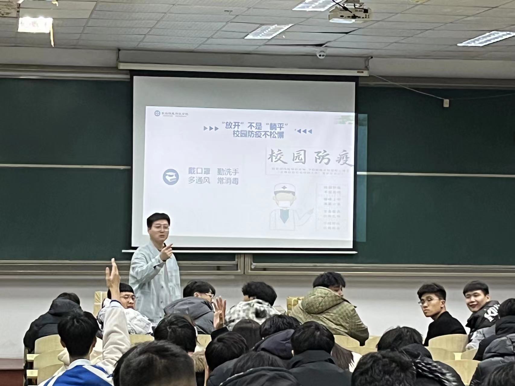 疫情防控仍然不能掉以轻心,辅导员老师们告诉学生要做好自身健康的第一责任人,做好自我防护,坚持科学佩戴口罩,要注意保持手卫生,勤洗手,清洁双手前不要用手触碰口、眼、鼻,居室和办公场所要保持良好通风,定期开窗通风,避免空气污浊。叮嘱学生及时调整生活作息规律。