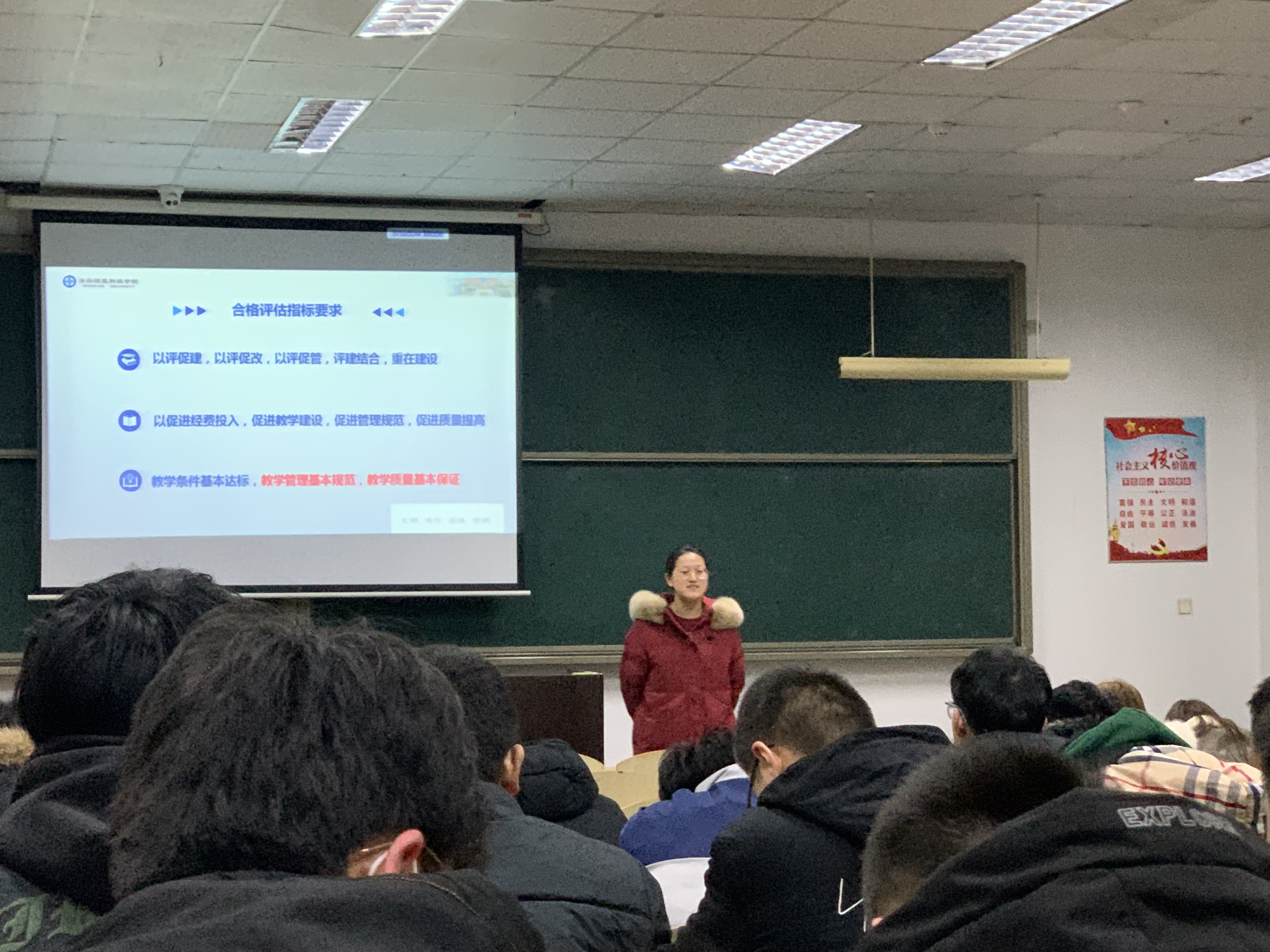 辅导员老师们还讲述了迎评促建的重要性,讲解课堂秩序、宿舍卫生、仪容仪表、行为规范四个方面,进一步加强校风、学风建设,形成“人人关心评促、人人了解评促、人人参与评促、人人都是评促对象”的浓郁氛围。以良好的精神状态和扎实的工作作风做好迎评工作,为学校发展再上新台阶奠定坚实基础。