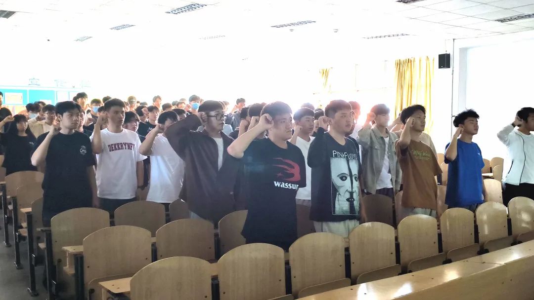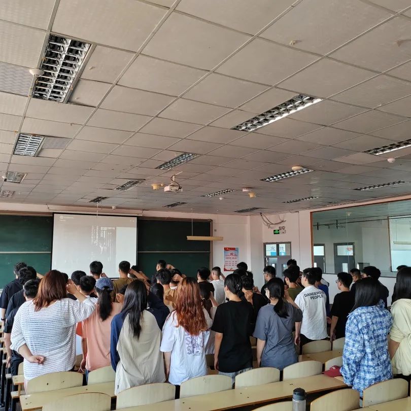 本次升旗仪式是在各班辅导员老师的带领下,在教室以观看直播的形式进行的。
