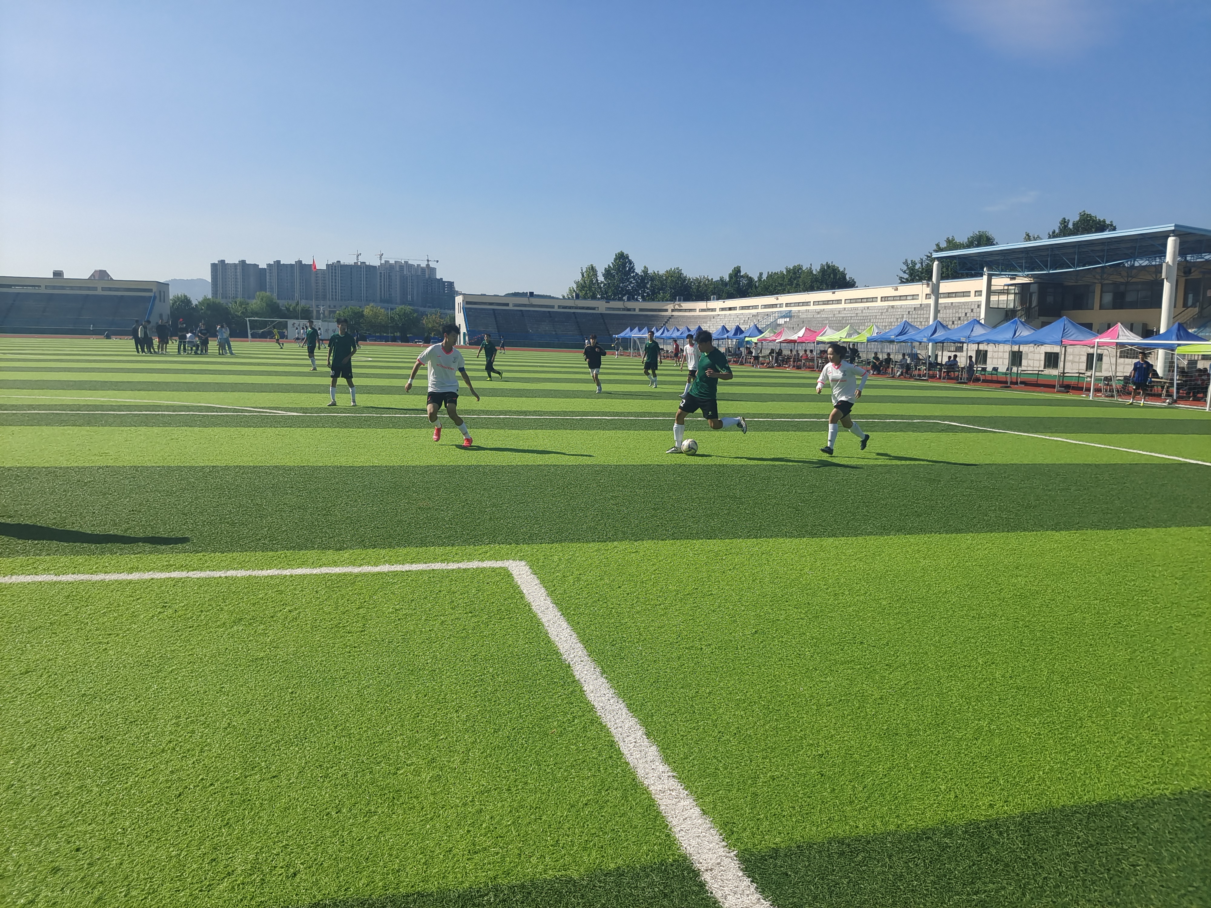 比赛中,球员们个个精神抖擞,在绿茵操场上全力奔跑,带球、颠球、传射、积极拼抢、防守卡位、互不相让。