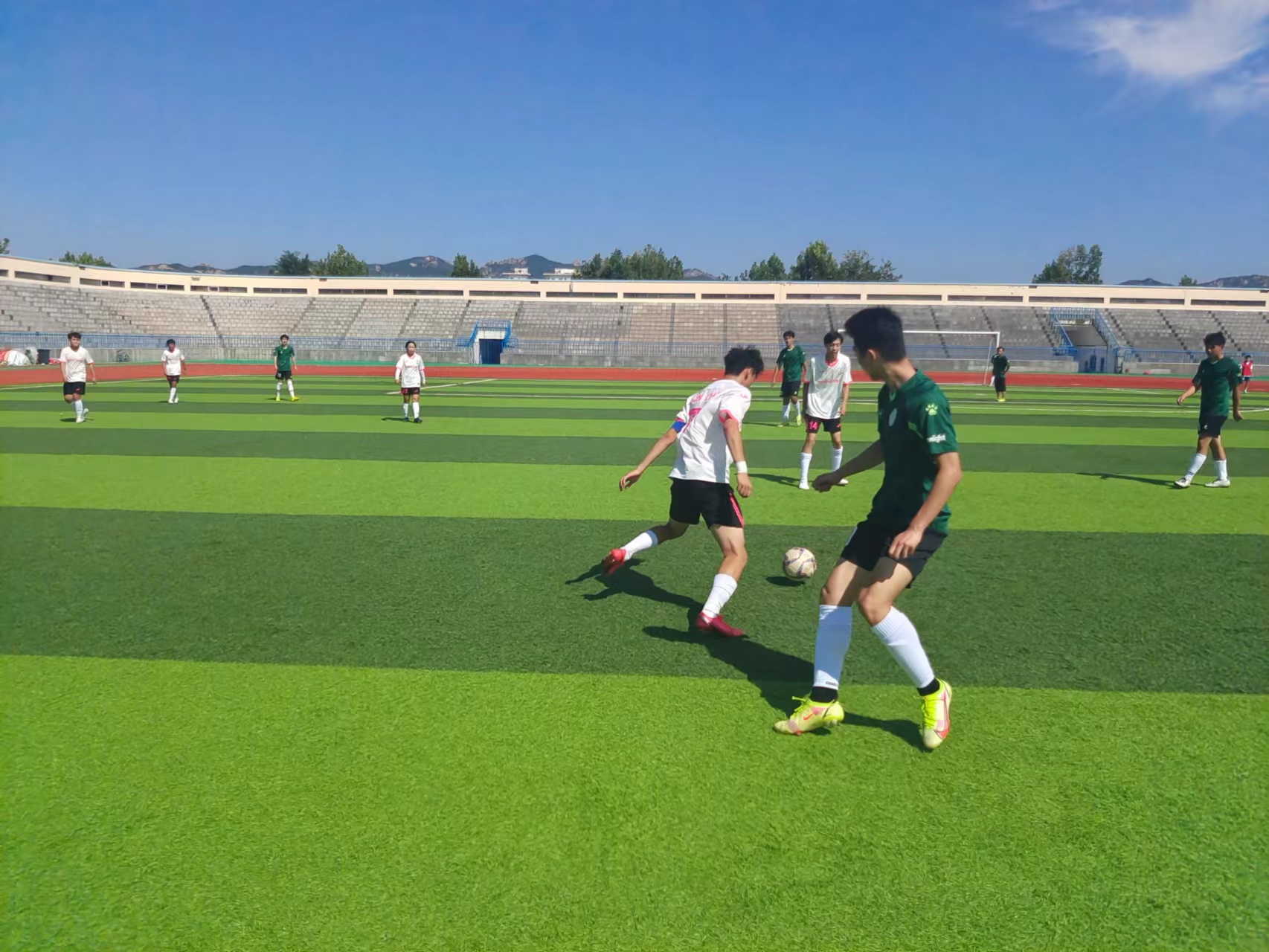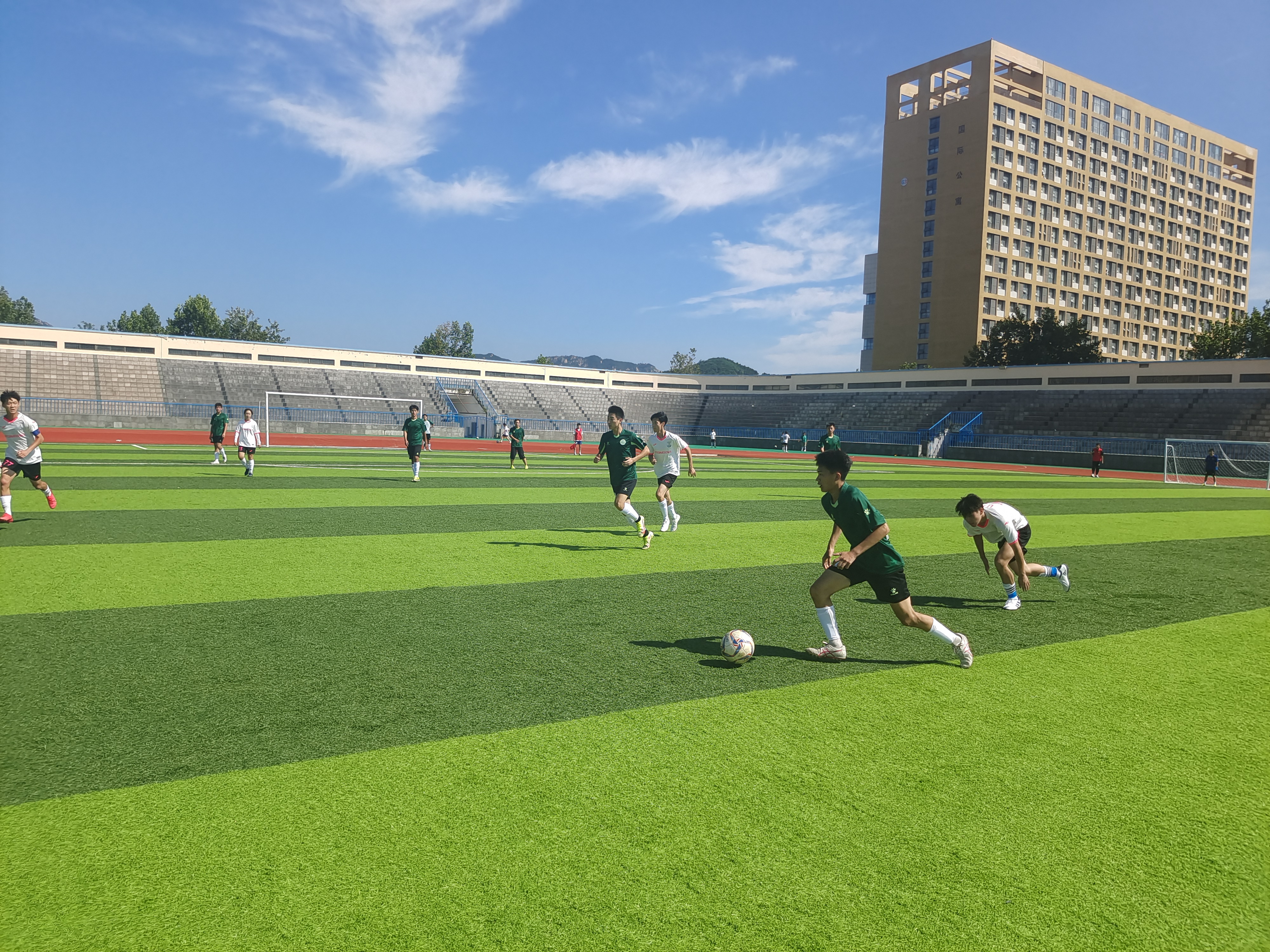 他们脚法娴熟,配合默契,激烈的对抗和精彩的进球引得观战的同学们和教练呐喊助威,加油声此起彼伏,热情一浪高过一浪。