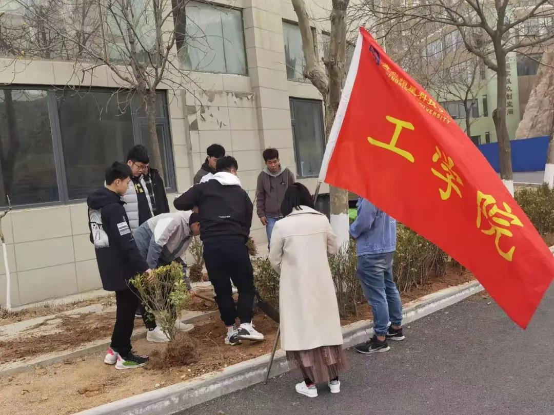工学院在明年又会换上新装,当绿色铺满整个校园,那抹纯粹的绿色,净化心灵。种长青树,铸工院魂,让工院精神长青!