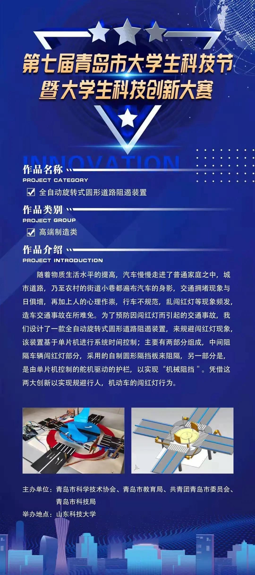 2021年6月20日上午,第七届青岛市大学生科技节暨大学生科技创新大赛在山东科技大学逸夫讲堂举行。青岛恒星科技学院工学院组织学生参加本次大赛,其中我院有三支队伍脱颖而出,分别斩获大赛一、二、三等奖。