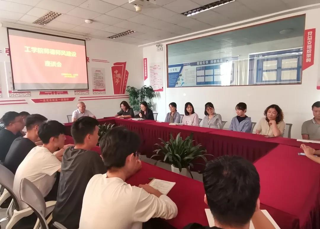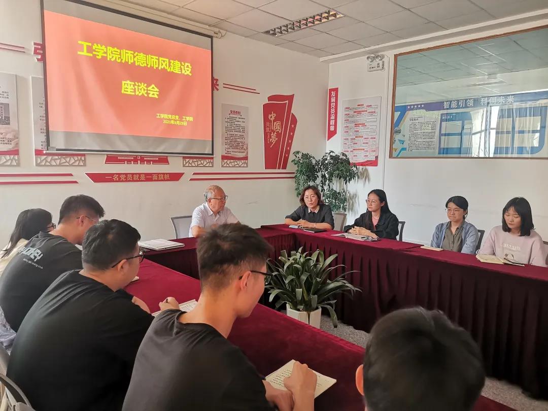 教师是人类灵魂的工程师,但是做好这位工程师需要教师们不断提升自我。为提升教师们的专业和道德水平,更好地承担起教书育人的重要责任,工学院于2021年9月29日在A4铭志楼召开“师德师风建设”座谈会。参加座谈会的有工学院院长常德功、学生管理院长张菲菲、工学院党支部书记潘娜娜、各位老师代表以及学生党员代表。