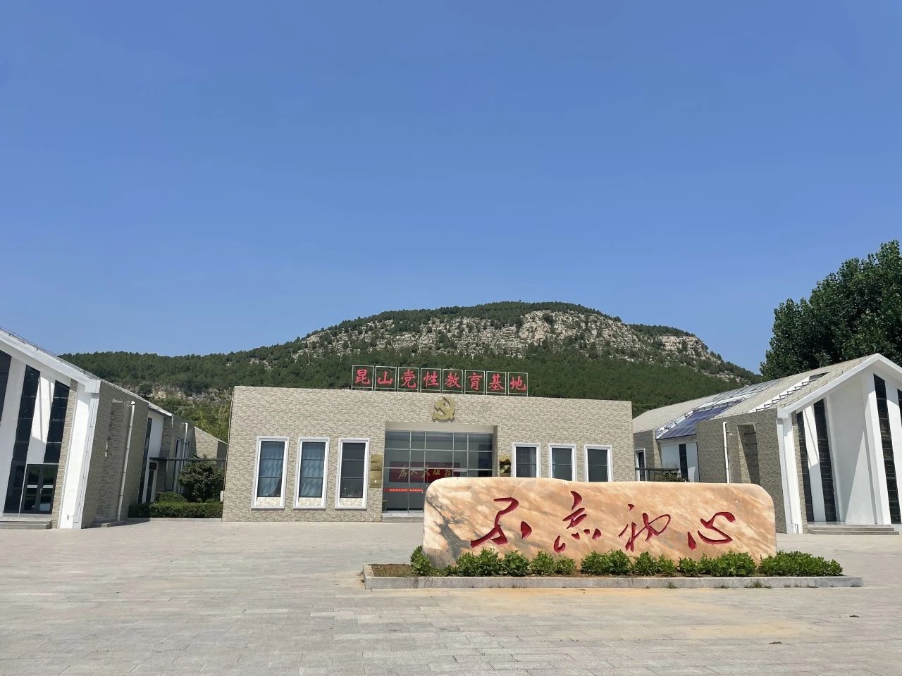 昆山党性教育基地坐落在泰安市东平县银山镇南堂子村,地处《水浒传》 中描述的“八百里水泊”唯一遗存水域——东平湖西岸的昆仑山下,西临黄河,东望泰山,三面环山,一面临湖,风光秀丽, 自然资源丰富,文化底蕴深厚。基地占地270余亩,并以学习习近平新时代中国特色社会主义思想和党的十九大、二十大为主题,以锤炼基层党员干部党性和忠诚干净担当好干部过硬本领为己任,以加强中小学生爱国主义教育为重点,高标准规划建设了党性教育基地。按照“一路牵七区”的设计思路,划分为游客集散区、南堂文化区、研学教育区、昆山党性教育核心区、昆山生态区、商业区、新型社区,是“幸福家园、自然家园、精神家园”综合体。