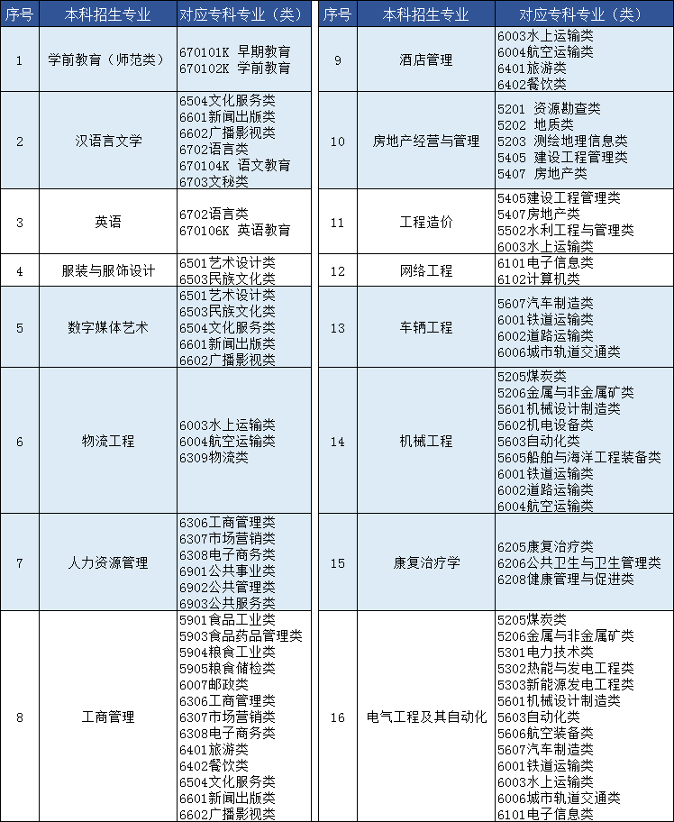 2020年我校共设有16个拟专升本招生专业