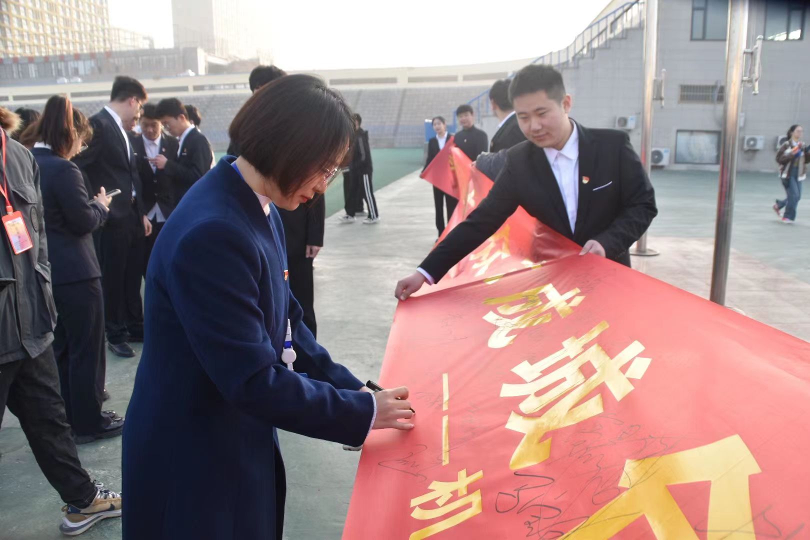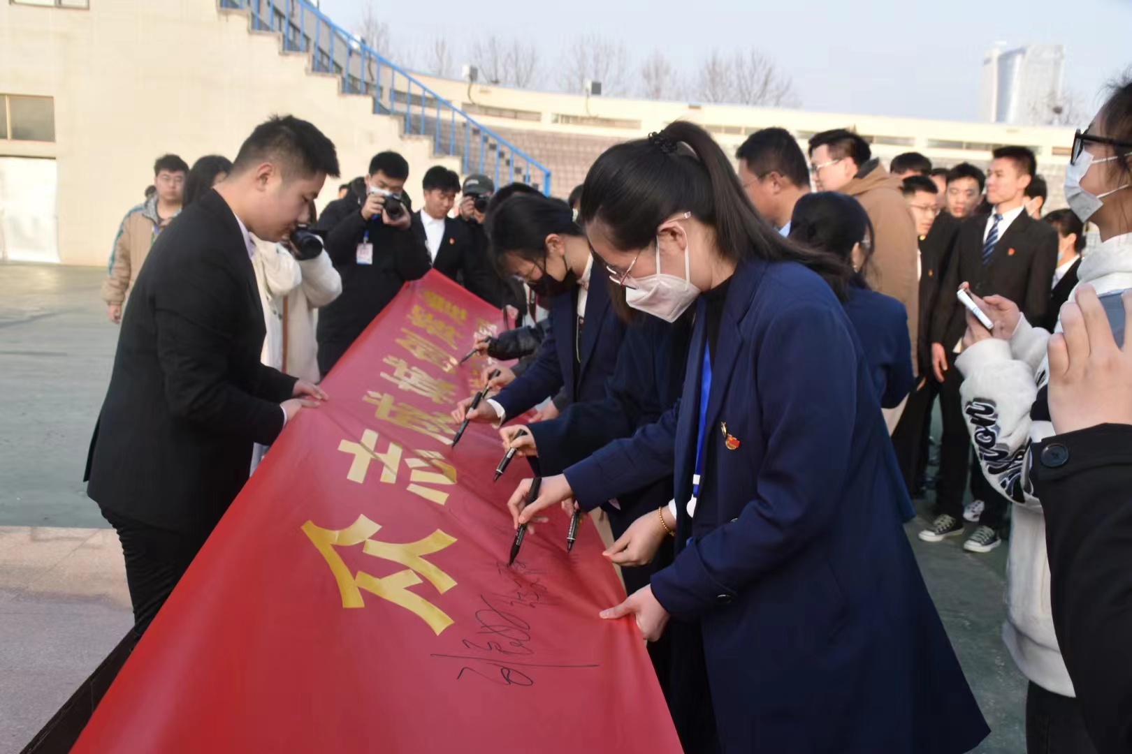 响应学校号召,迎接本科评估的工作不仅仅只是口号,更需要我们的切实行动,参与升旗仪式的全体师生在横幅上签下自己的名字,以展示师生齐心协力,全力以赴迎评估的决心。