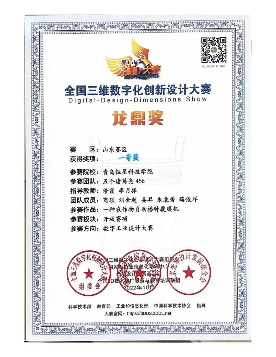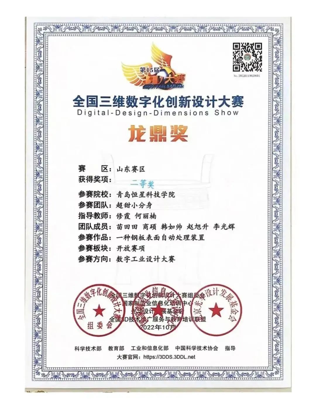 本次大赛山东赛区组委会定于2022年10月14日-16日在聊城大学举办2022第15届全国3D大赛山东赛区评审,通过同学们赛前认真准备,积极应赛。本次大赛机械与汽车工程学院共获得省级特等奖1项、一等奖1项、二等奖3项、三等奖1项的优异成绩。