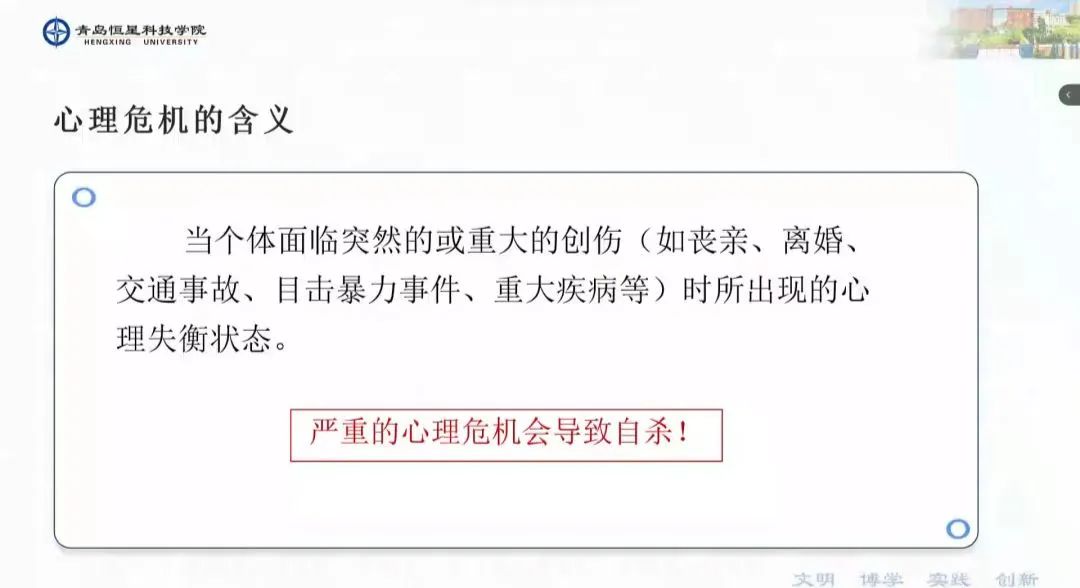 当大学生出现心理上的问题时,大概率会引发心理危机,心理危机一般有以下特性:突发性,紧急性,痛苦性,无助性,危险性。