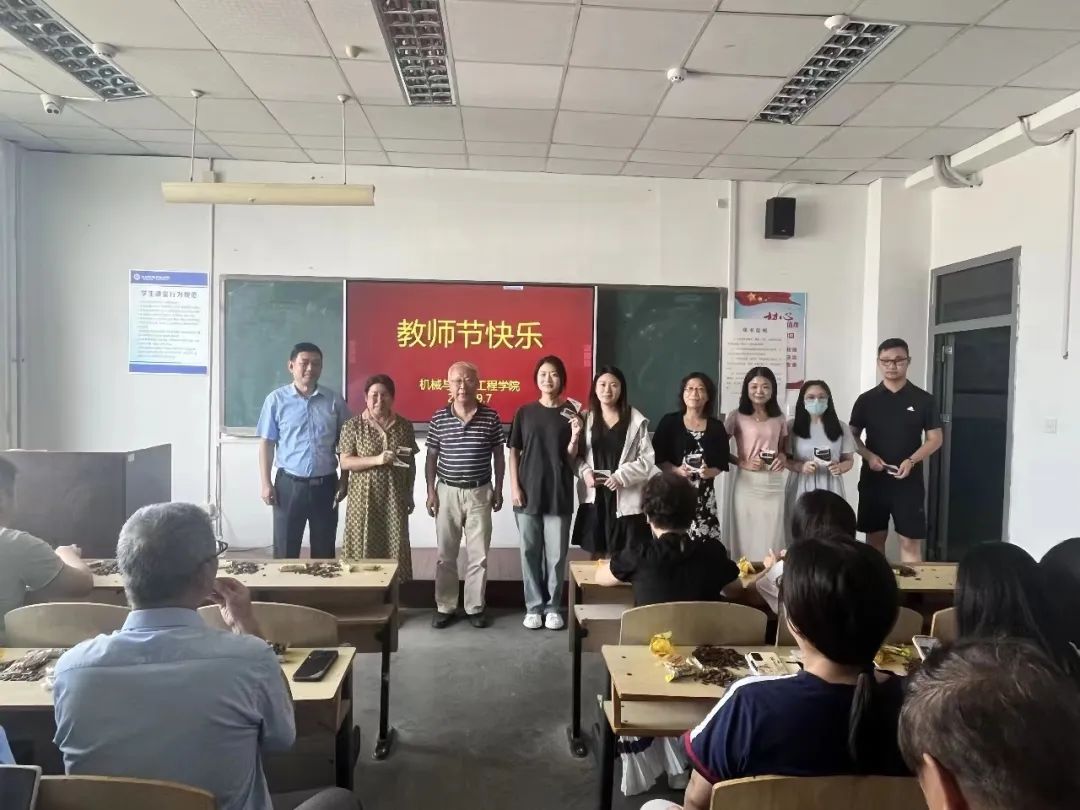 机械与汽车工程学院于9月10日在A4近思楼815教室开展教师节赠礼活动。出席本次活动的领导老师有:名誉院长常德功,党总支书记马宝同,执行院长庄新颖,党总支副书记张菲菲,教学院长修霞,办公室主任刘彦奇及其他教授教师。本次活动由庄新颖院长主持。