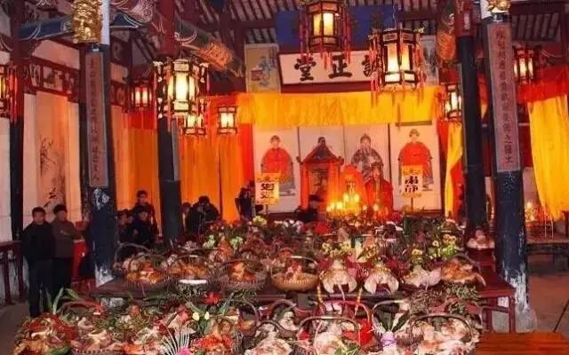 祭祖的形式各有不同,有的到宗祠拜祖,而大多在家中将祖先牌位依次摆在正厅,陈列供品,然后祭拜者按长幼的顺序上香跪拜。祭祖,多半做鱼肉碗菜,盛以高碗,颇有钟鸣鼎食之意。