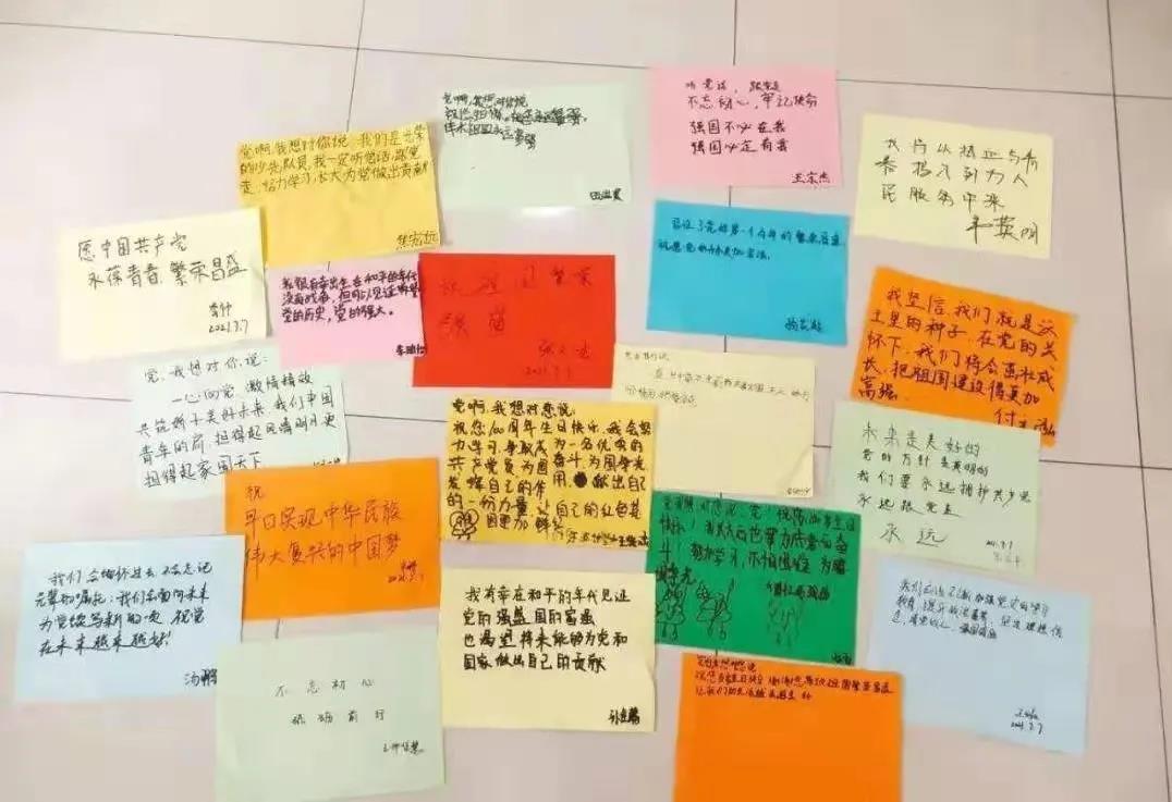 在建党百年庆祝大会上,习近平总书记说,未来属于青年,希望给予青年。在今天的主题团日上,青年团员们也用纸笔诉说了对党的祝福与感恩。党啊,我想对您说: