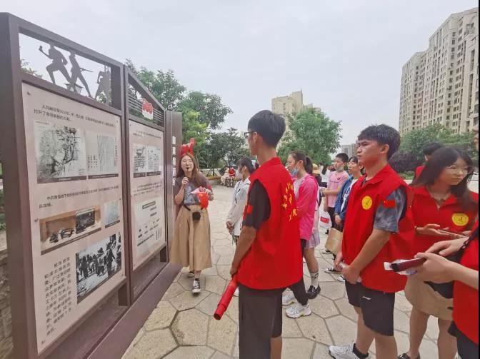 筑梦团队第一次去的时候恰逢7月7日,是“七七事变”84周年,84年,硝烟早已散去,但是对于历史我们永远铭记,永不敢忘。最后一次去的时候恰逢9月18日,历经90年的风雨沧桑,山河早已无恙,为了更加生动具体的带领青年团员们重温党史,确保党史学习教育取得扎实成效,真正做到学史明理,学史增信,学史崇德,学史力行。龙苑社区带领团员们来到了依托老虎山战场遗址建立的纪念青岛解放主题广场进行学习参观,龙苑社区团支部书记邱妍为大家介绍了青岛解放的相关知识并带领团员们重温了入团誓词。