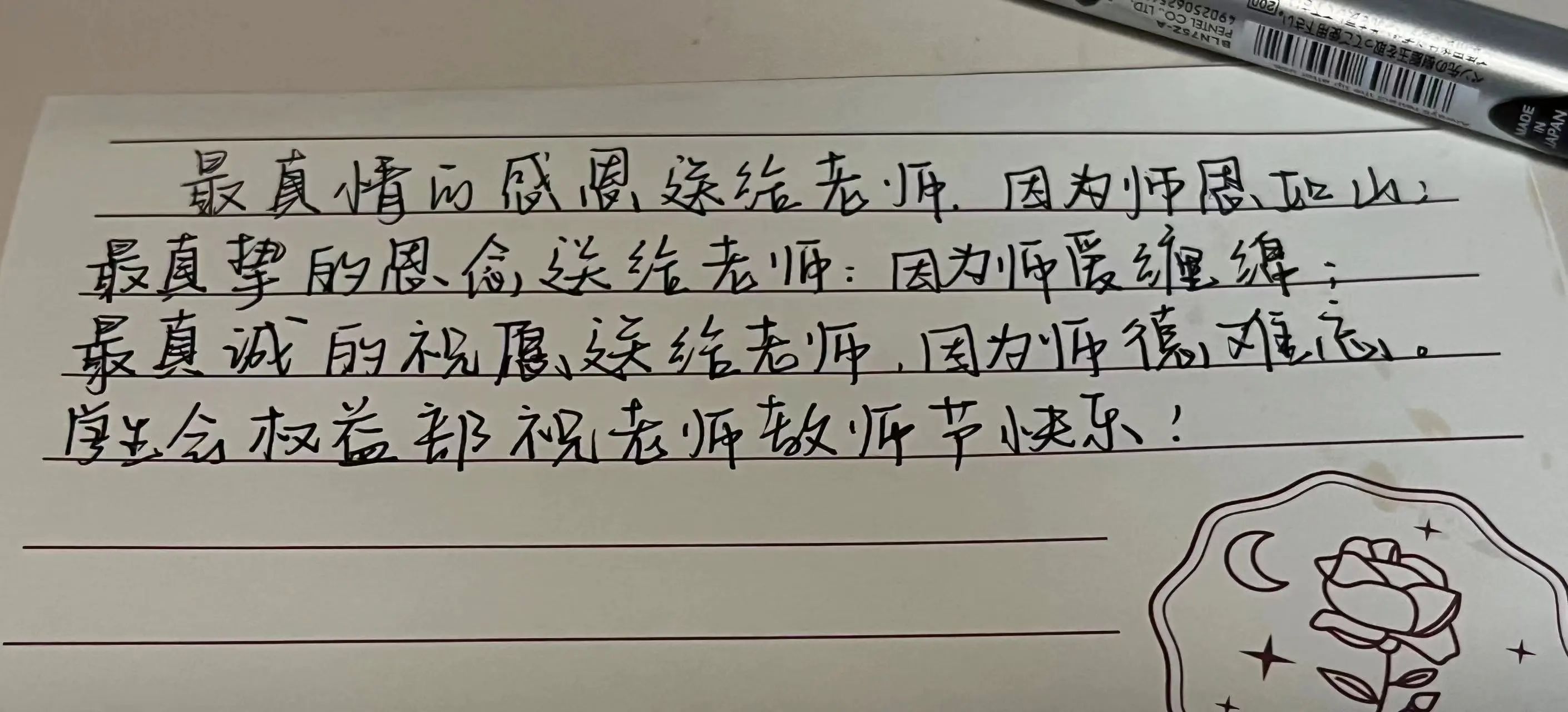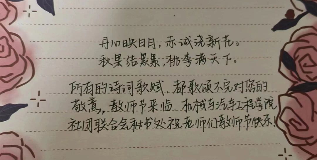 你是灯塔, 照亮我们前进的方向 你是彩虹, 指引我们绚丽的人生 你是雨露 滋润我们柔弱的心灵 愿老师们节日快乐!